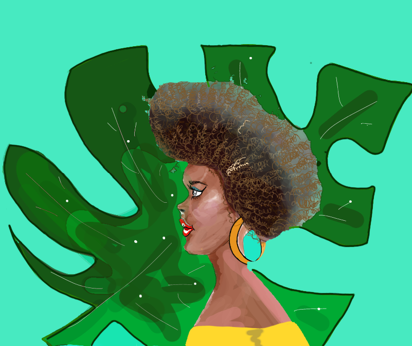 иллюстрация афродевушка на фоне листика манстеры.жаркое знойное яркое лето в сочных красках.Работа выполнена в векторной технике: на телефоне