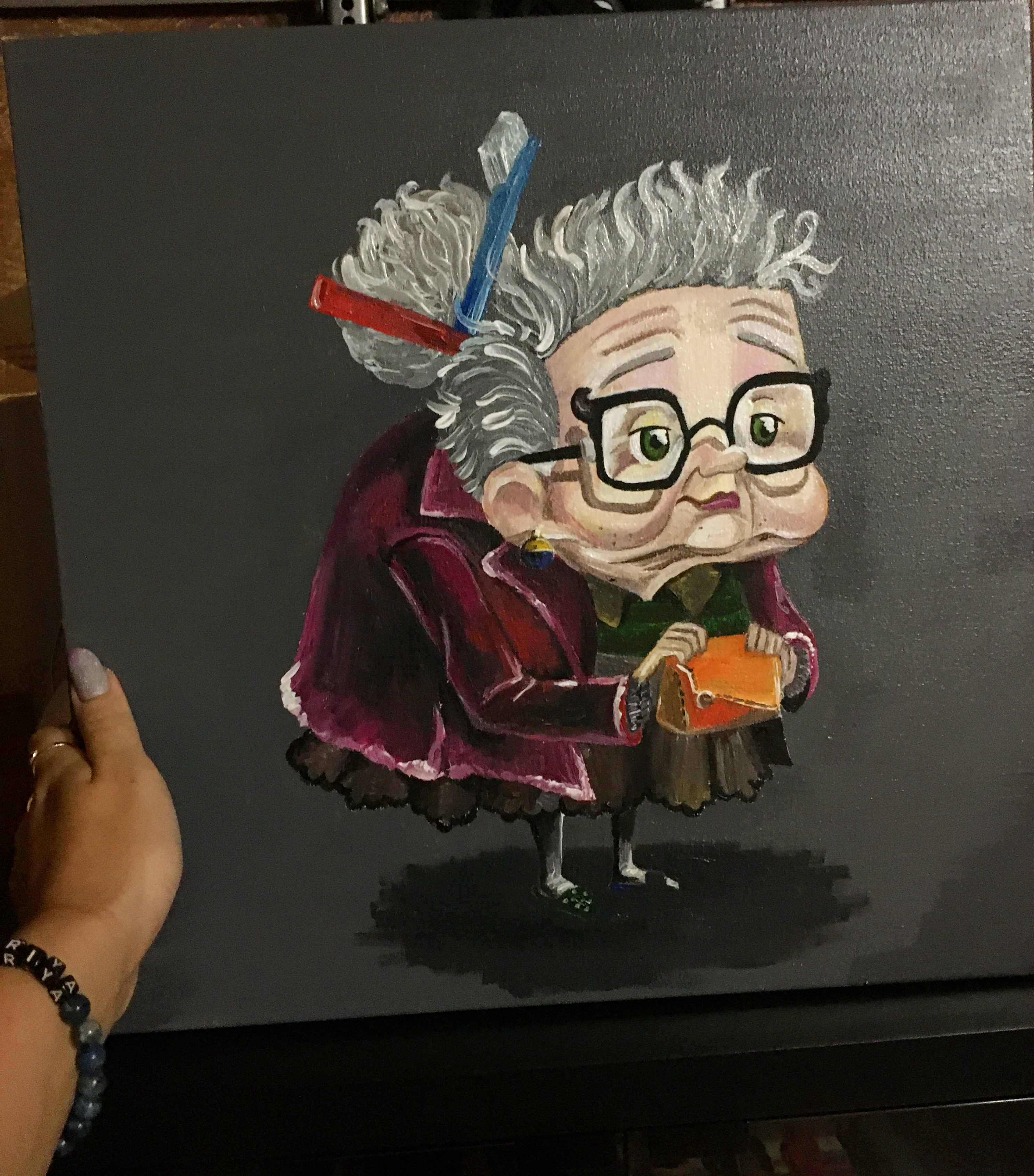 Веселая старушка 😁 Рисунок выполнен на холсте размером 40х40. Материал для создания рисунка -акриловые краски. Рисунок покрыт лаком для большей стойкости краски