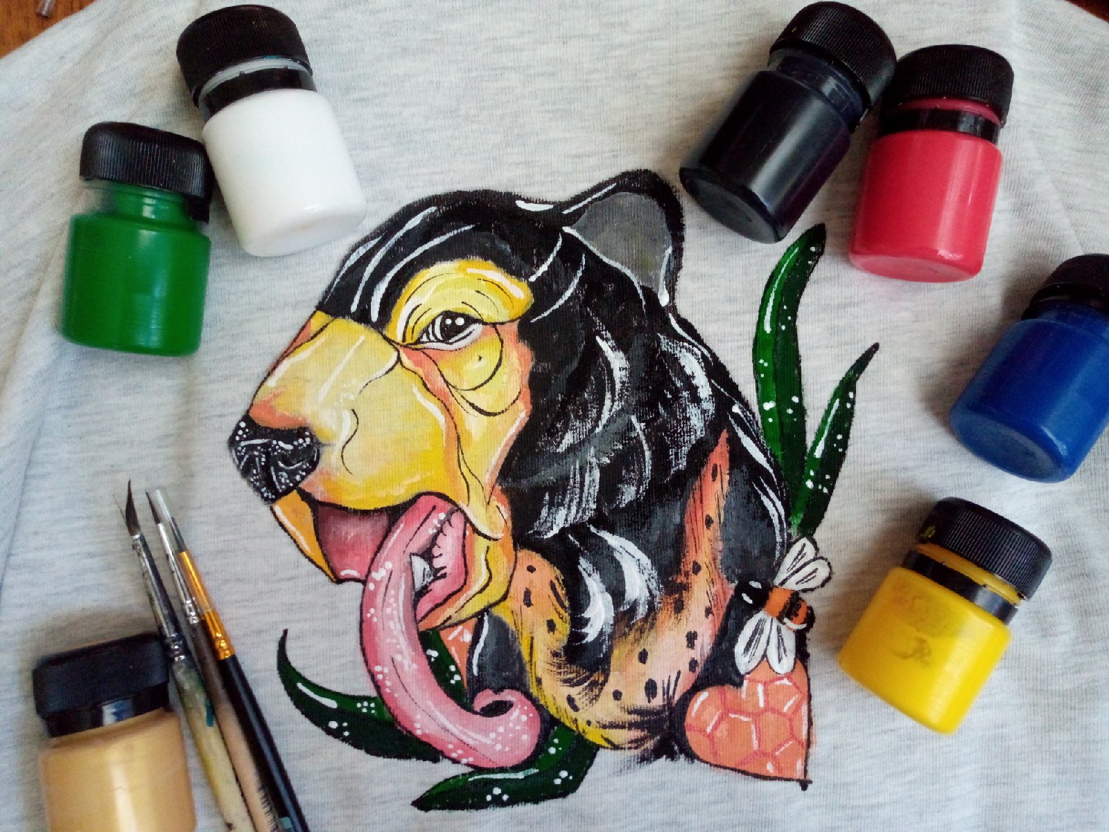 Роспись по ткани акриловыми красками позволяет создавать неповторимые и эксклюзивные вещи из обычных повседневных предметов гардероба, так же можно преобразит те вещи ,которые уже стали ненужными и потеряли своё свойство привлекательности .