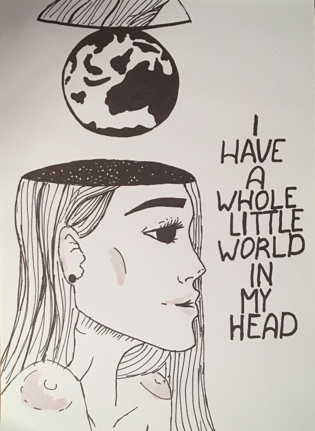 Минимализм. Смысл данного произведения в том, что в голове каждого из нас есть свой маленький мир, каждая личность индивидуальна, и никто не может знать что таится дадут в мыслях любого из нас.