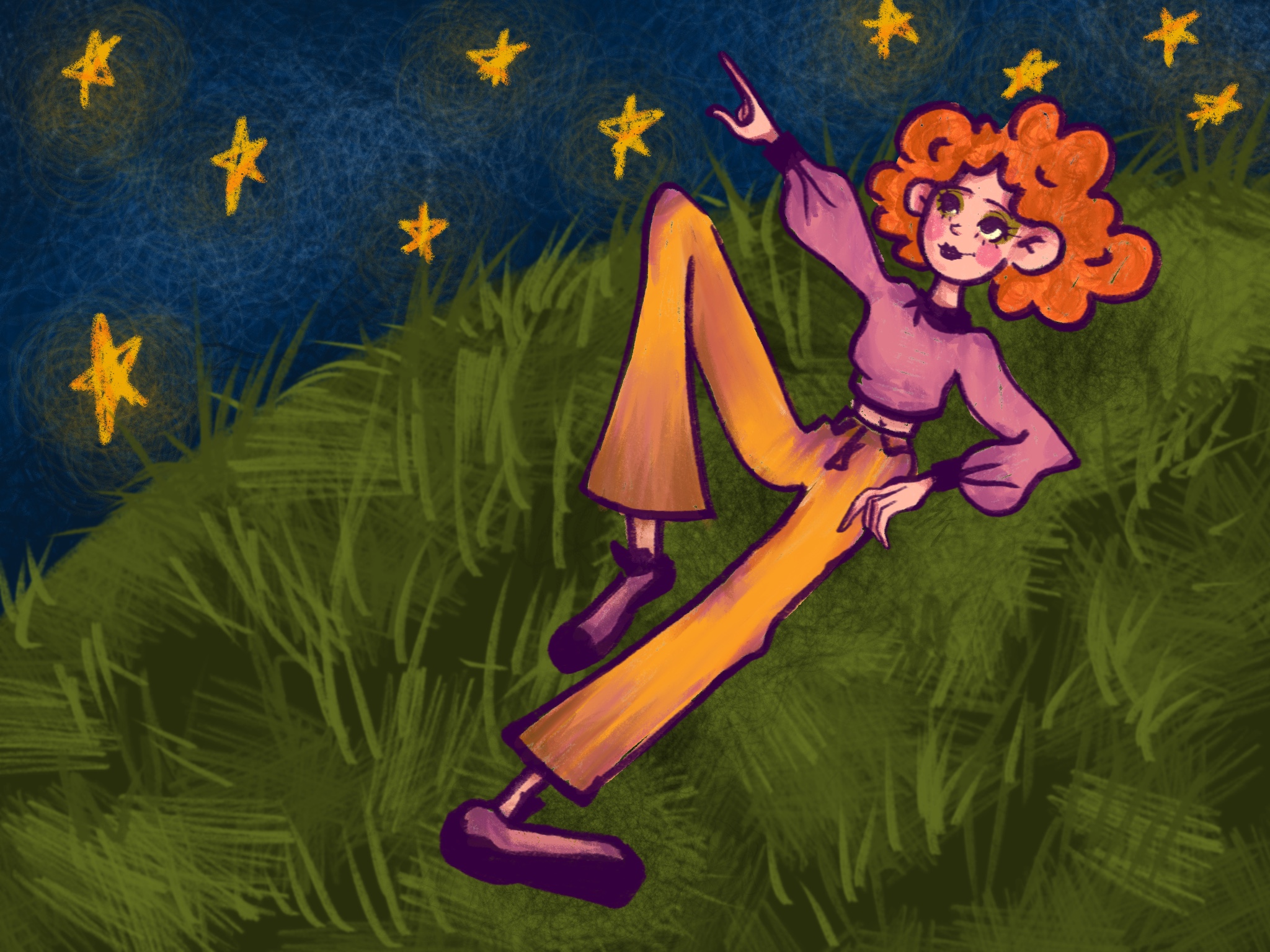 Милая девушка увлечённо рассматривает звездное небо.