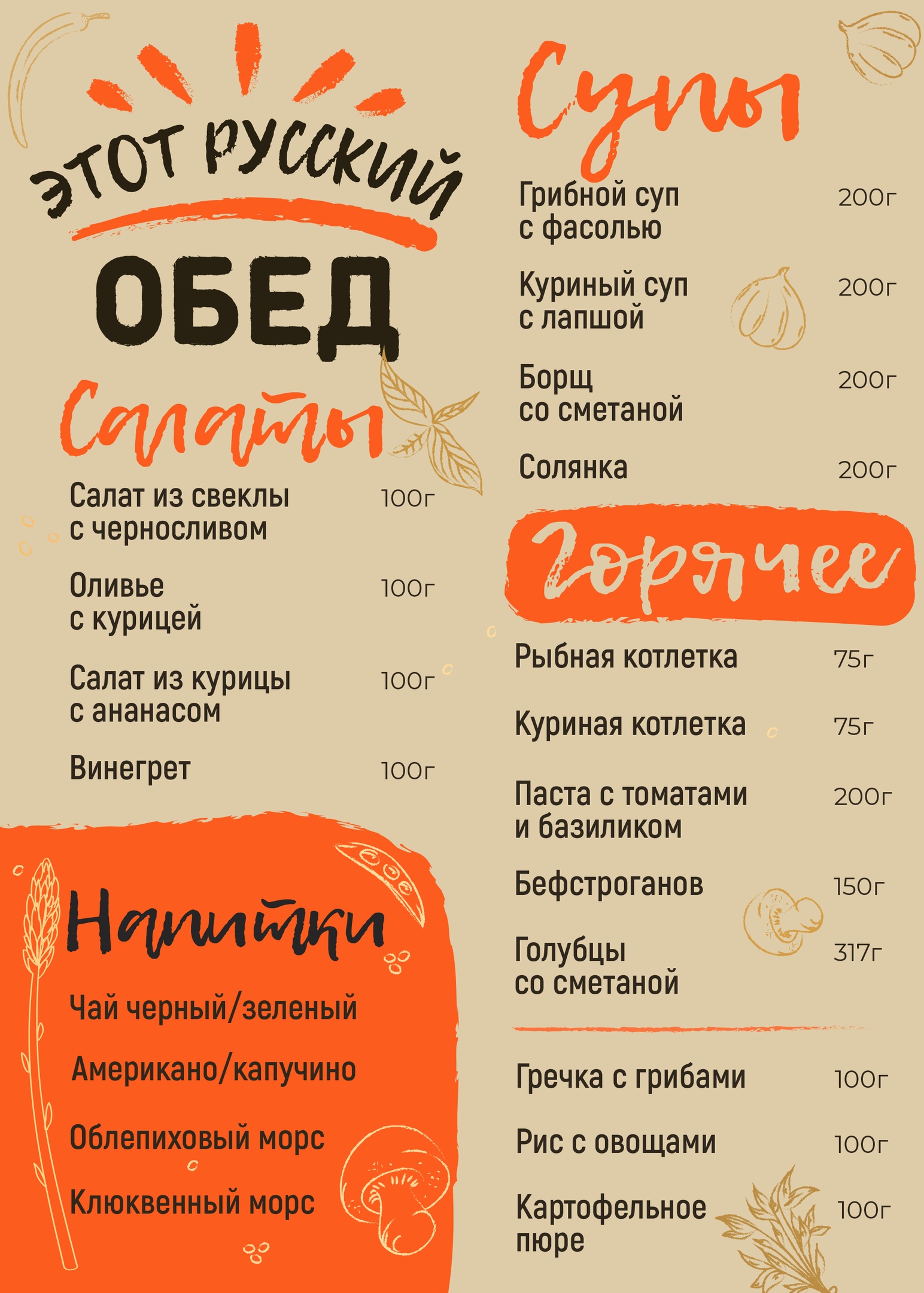 двухстороннее меню для бара в Ялте "Этот русский обед"