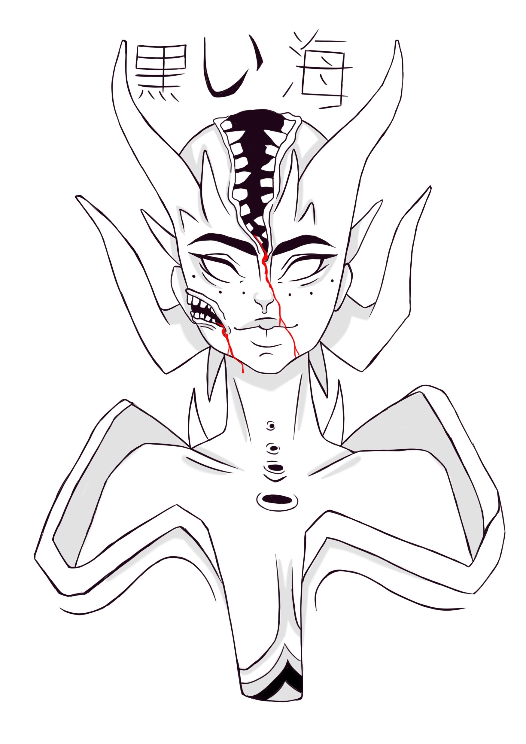 Эскиз тату в чкрных, серых и красным цветах