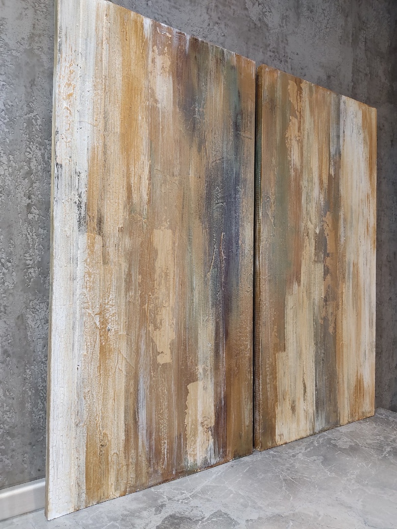 Картина "Золотая осень". Ручная работа. Состоит из двух половин. Картину можно расположить как вертикально, так и горизонтально. В любой позиции, она соединяется в одно целое). Подходи для современного интерьера).