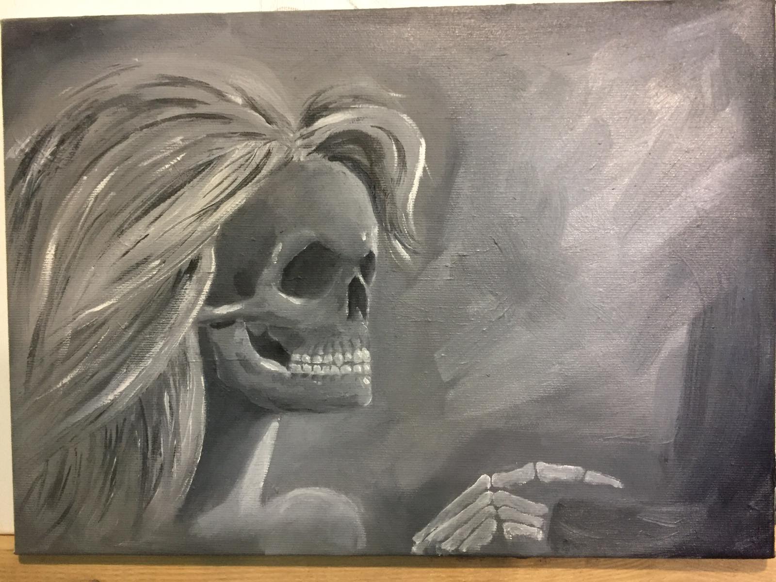 мое виденье на мир. картина писалась в эмоциональный период жизнь и все эмоции были изложены на холст. по сути картина говорит о том что даже ужас прекрасен.