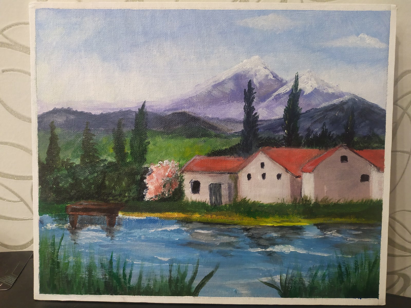 Написана на холсте, размером 25х30, выполнена акрилом. Очень теплая работа, позволяющая окунуться во время безмятежного лета у бабушки в деревне. Прекрасно впишется в интерьер.