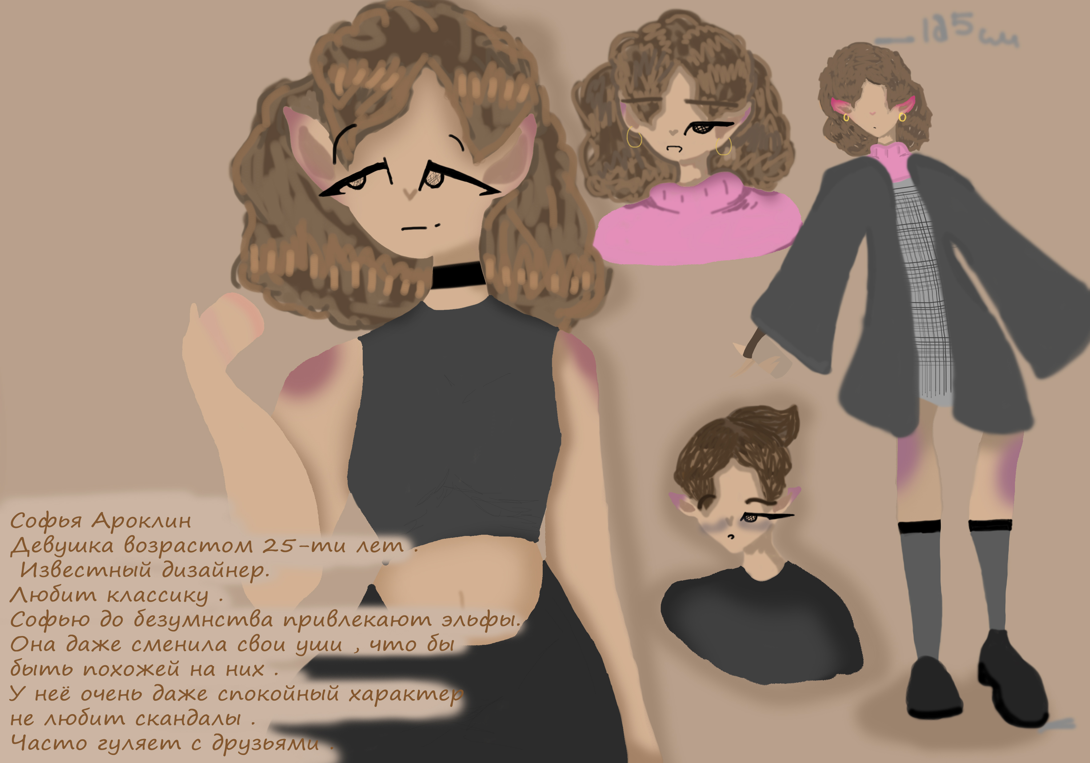 Готовый персонаж с небольшой анкетой. Вид в полный рост , вблизи и два эмоциональных состояния .