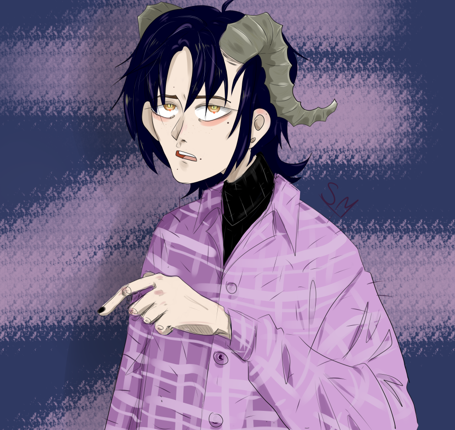 Один из придуманных мной персонажей - Демиан. Равнодушный ко всему стиляга демон. Продаю его так адопта, или просто арт. Подпись уберу.