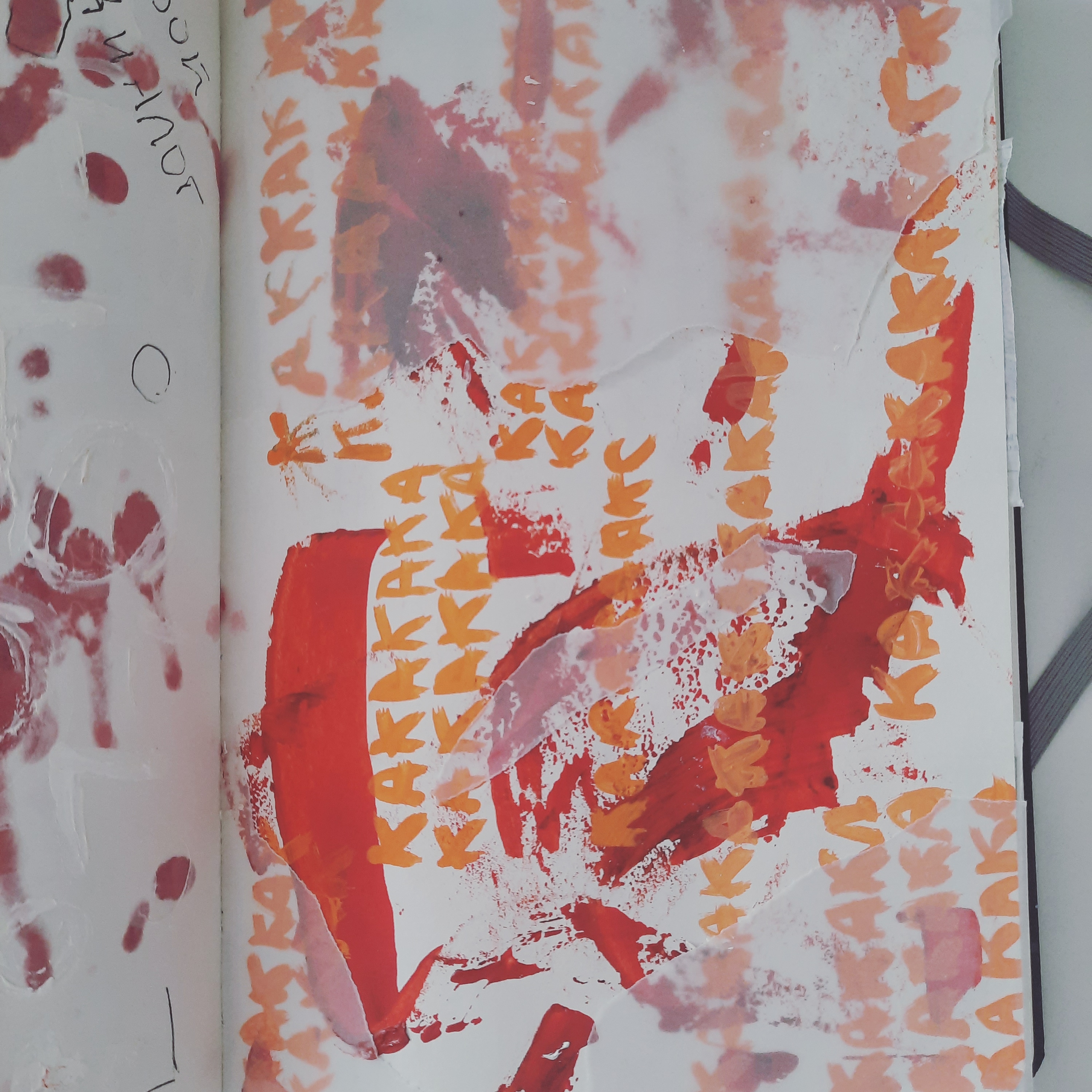 Данная страница выполнена темперой и тушью. Кроме того применялись различные техники, такие как печать и аппликация с применением кальки .