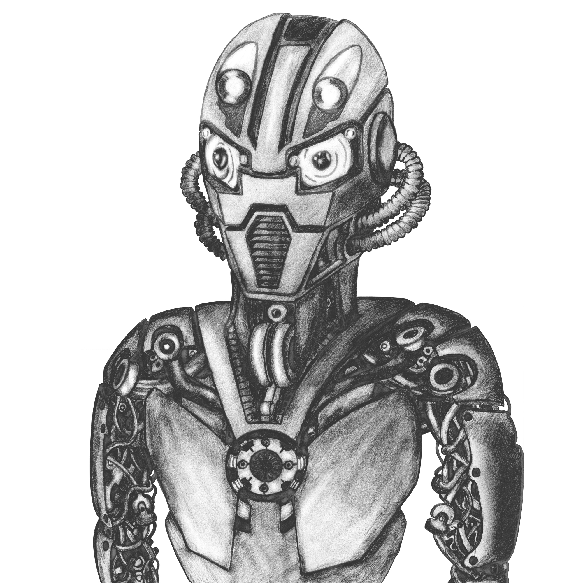 Вымышленный персонаж робота Skay v 0.1. Робот показывает всю свою брутальность оголенными, подвижными механизмами и проводами. Минимальное количество защитных пластин показывают всю структуру внутреннего строения робота, что и делает его красивым.
