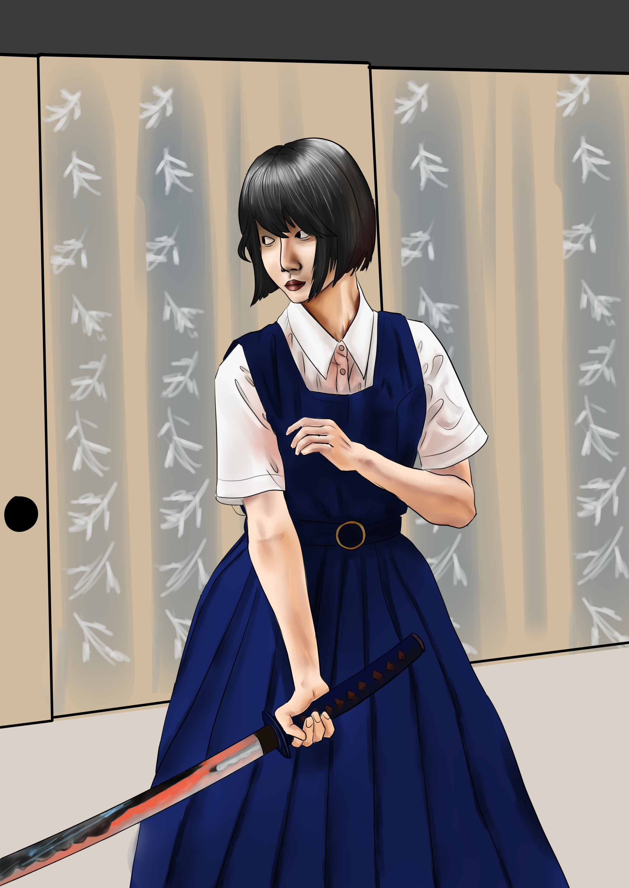 Девушка с мечем, выполнена с помощью sai2.