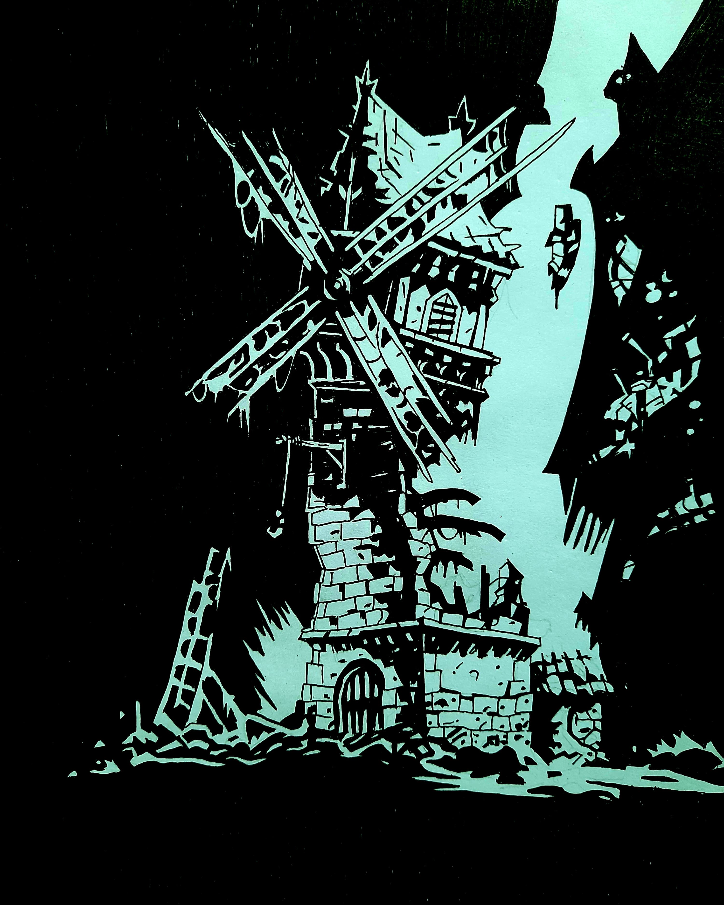 Мельница из вселенной Darkest Dungeon. A4 Капиллятная ручка чёрная 0.3 ,0.6. Мне очень нравится эта компьютерная игра. Она была вдохновлена рассказами Лавкрафта. Атмосферная. Решила нарисовать мельницу от туда. Тем более выходит вторая часть этой игры