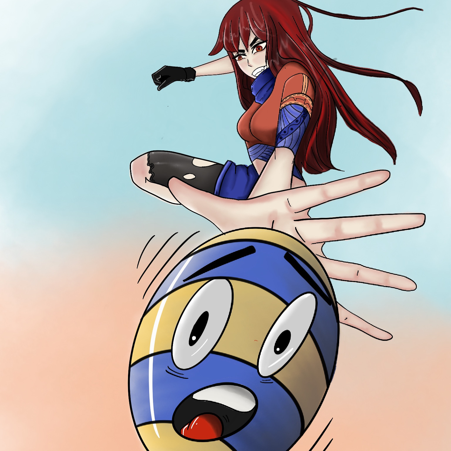 Даже волейбольному мячу страшно когда его начинают отбивать. На данной иллюстрации изображена девушка которая готова отбить мяч с особым энтузиазмом.