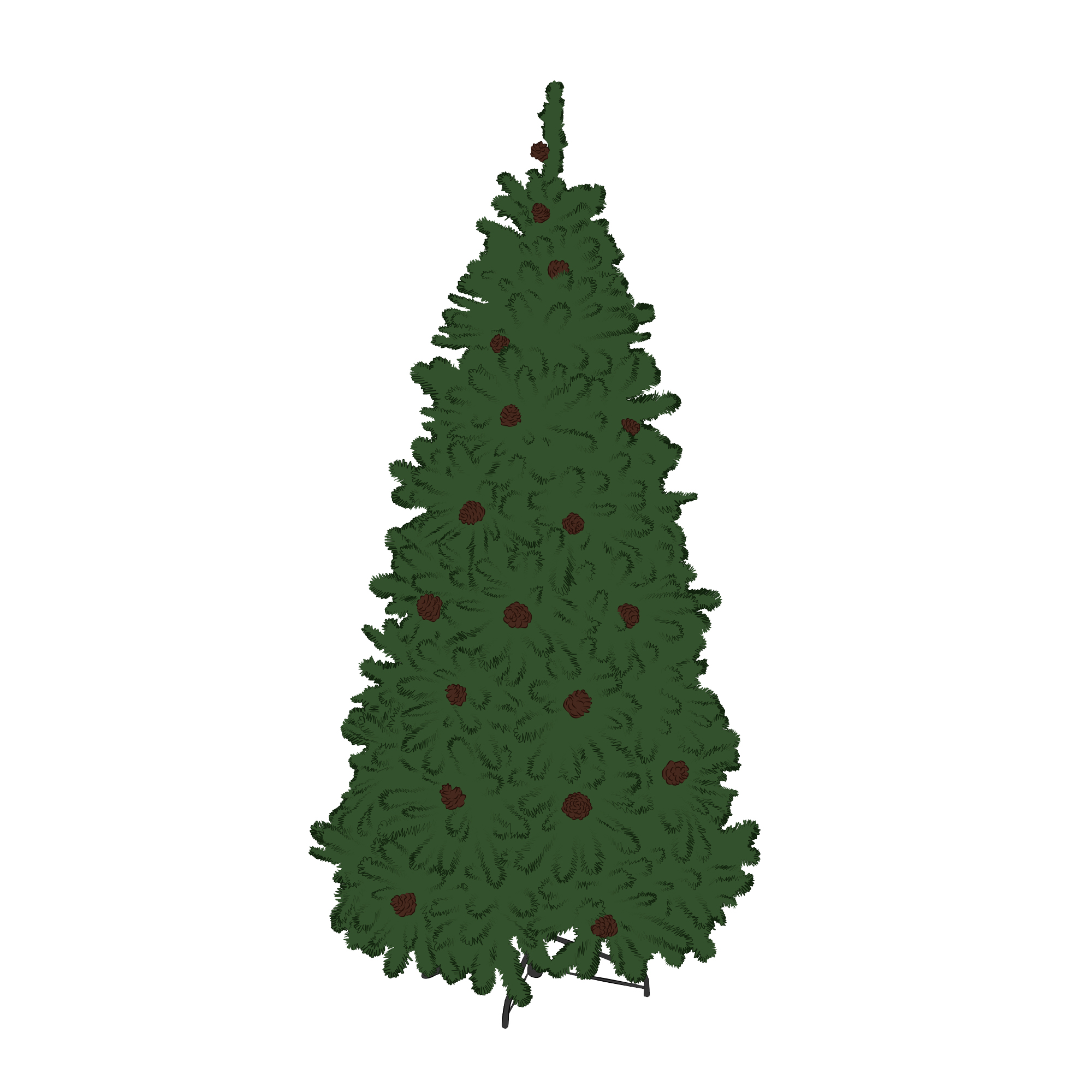 Ель с шишками на подставке. Новый год. Новогодние праздники. Создано с помощью Фотошопа. Применила контур и заливку. Реалистичный стиль иллюстрации