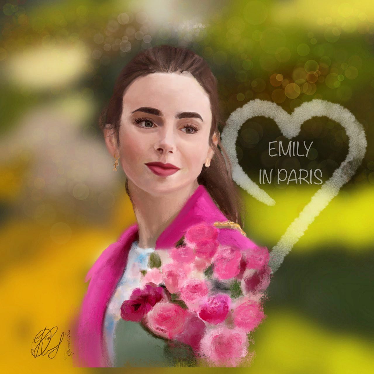 Цифровой портрет персонажа из современного популярного сериала "Эмили в Париже", которого сыграла известная американская актриса Лилли Коллинз.