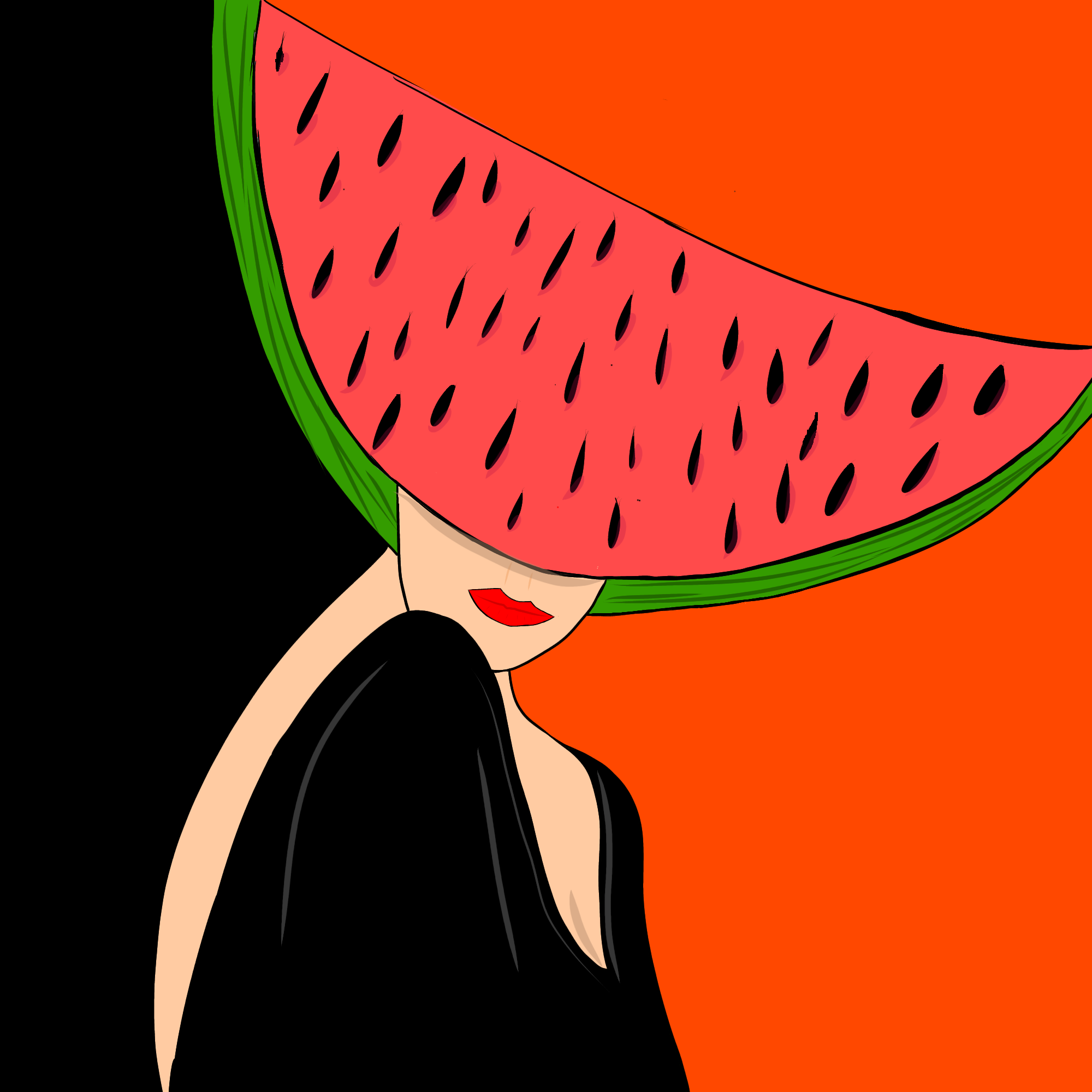 Работа называется, девушка в арбузной шляпе,красочная картина скрасит ваши стены. Работа наполнена красотой,душой ярким воображением художника