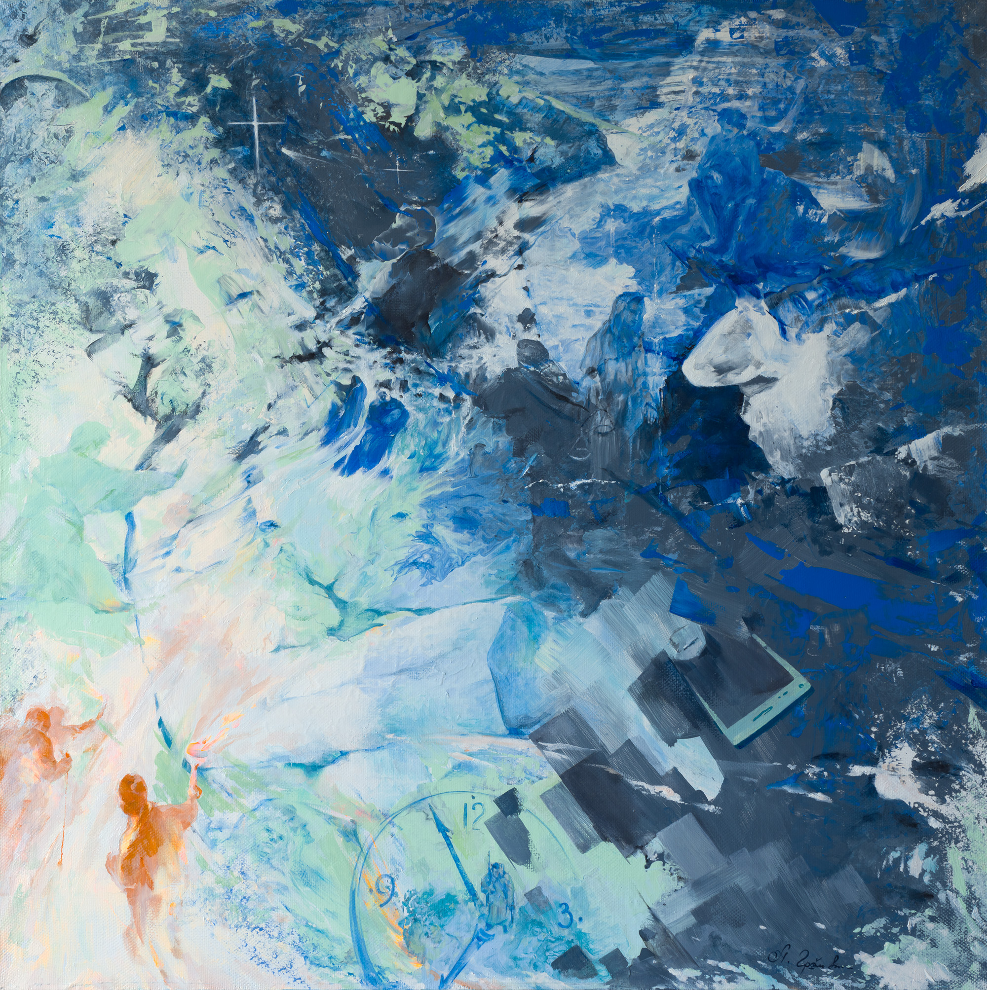 «В сладком сне тотальной цифровизации». 80 х 80 холст, акрил, масло.
