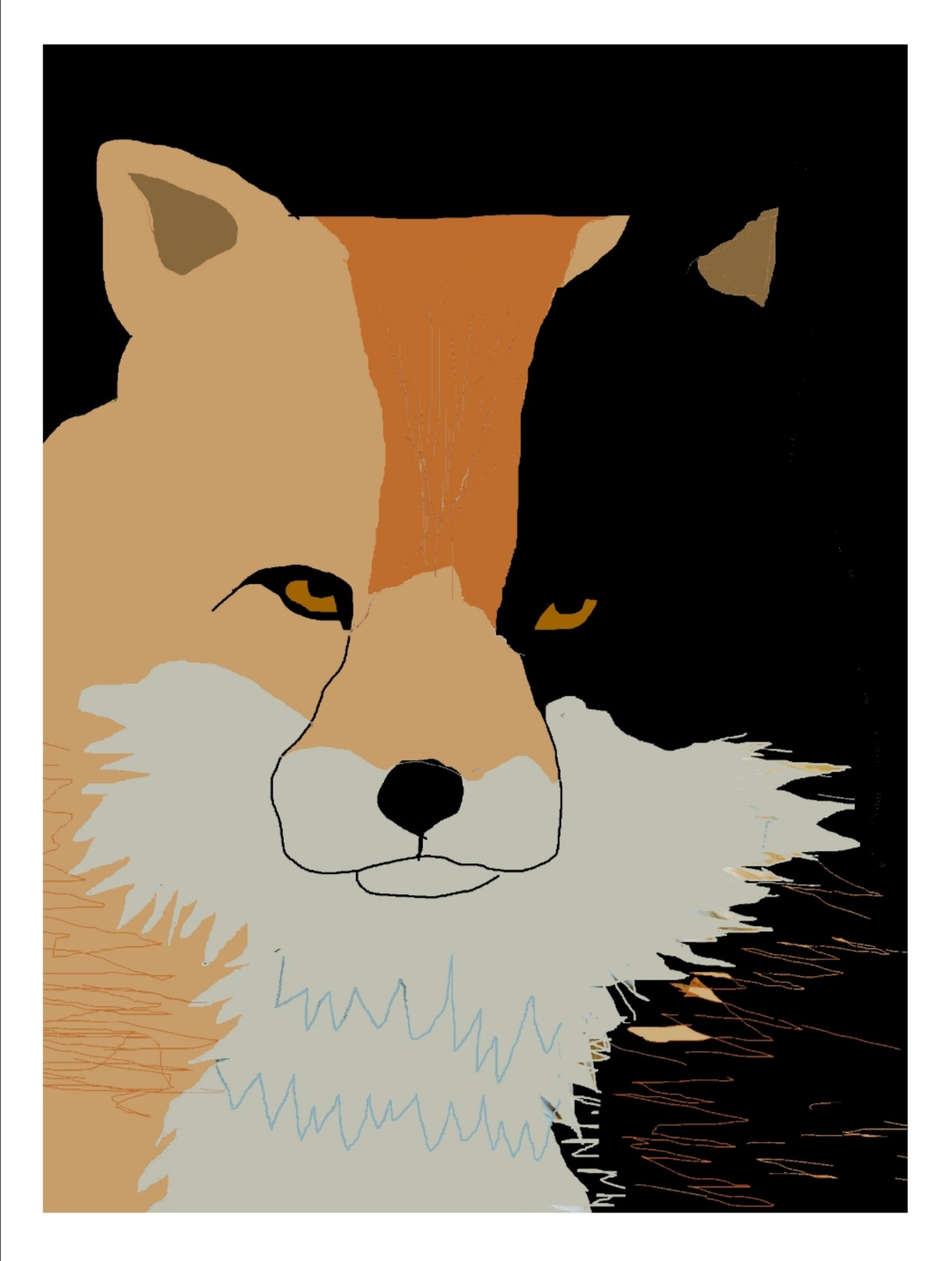 Графический рисунок. Название-"Лиса". Стоимость 100 рублей. Нарисована в оранжевых, чёрных и белых тонах. Можно использовать, как обои или аватарку на телефон.