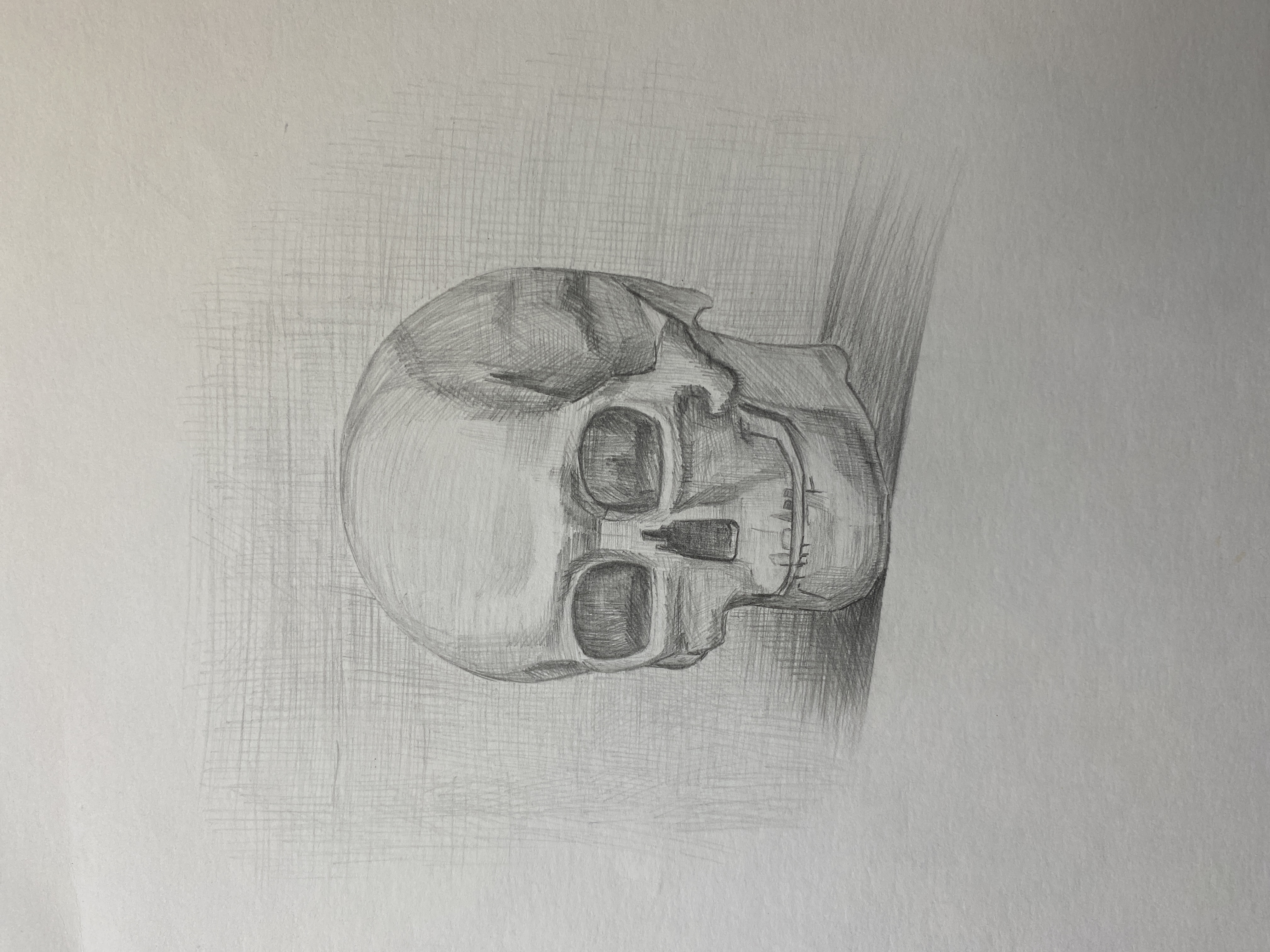 Академический рисунок черепа, на формате А3. Нарисованный карандашом.