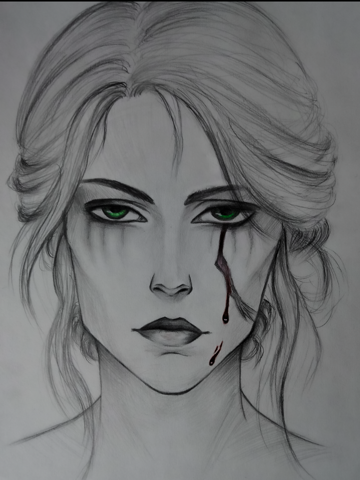 Изображена Цири из игры Ведьмак.