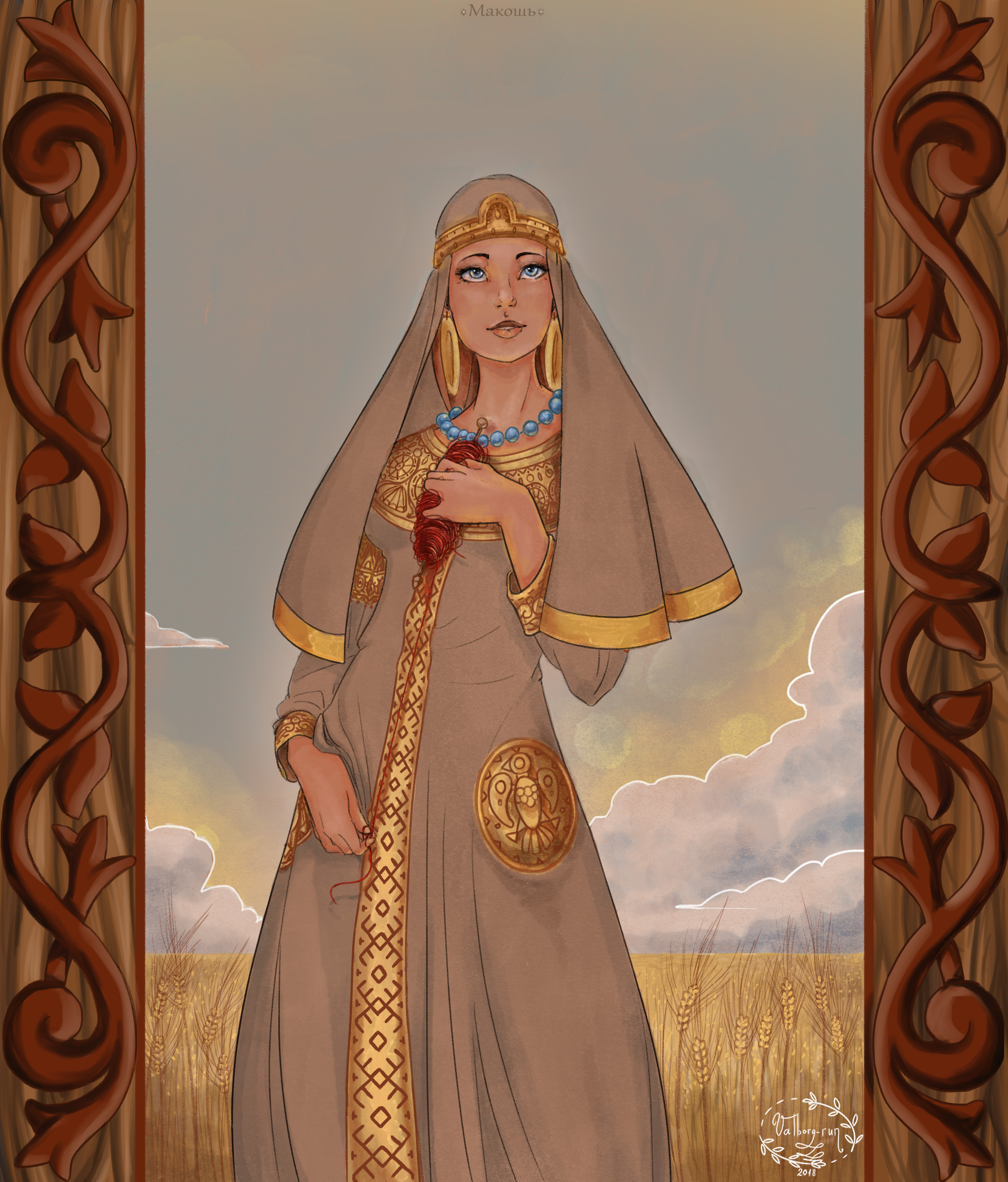 Образ Богини Макоши в акварельной технике исполненная в Photoshop CC 2018.