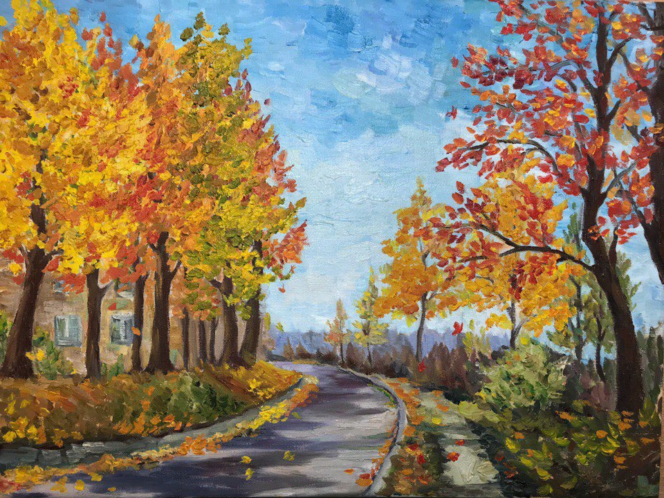 Очень теплая и атмосферная картина 30х40. Добавит уюта в ваш дом и согреет в дождливый день. Масло является одной из самых необычных техник в живописи.