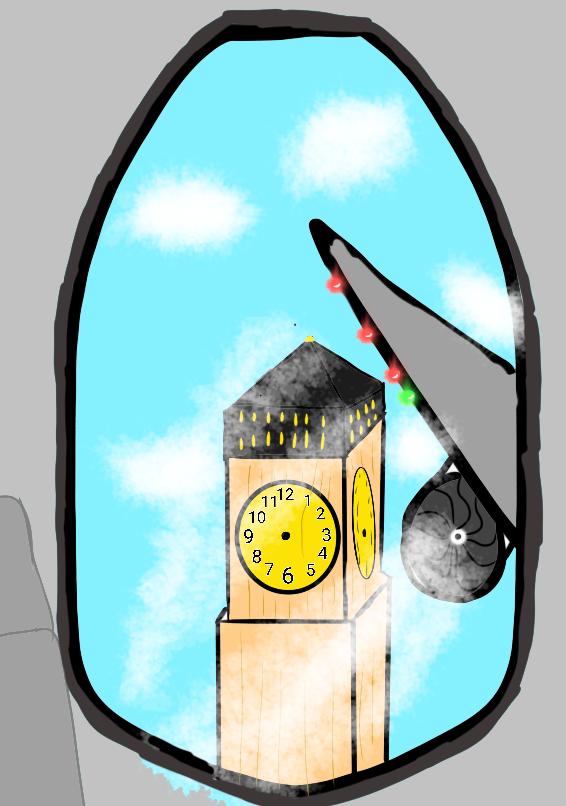 как принт на одежду или на обложку книги. Вид на Биг-Бен из иллюминатора самолёта