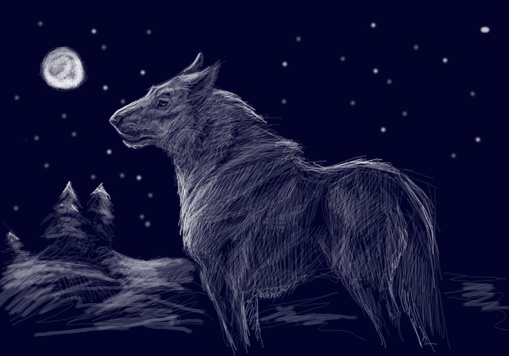 Волк в зимнюю лунную ночь, компьютерная графика. Просто быстрая зарисовка того что пришло в голову. Понимаю что не шедевр но может кому то понравится.