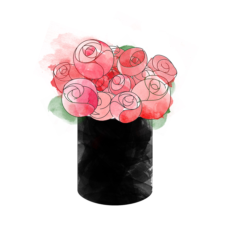 Картинка сделана в Фотошоп и Иллюстраторе, при желании предоставлю исходник. При необходимости можно убрать коробку и оставить букет - пишите)