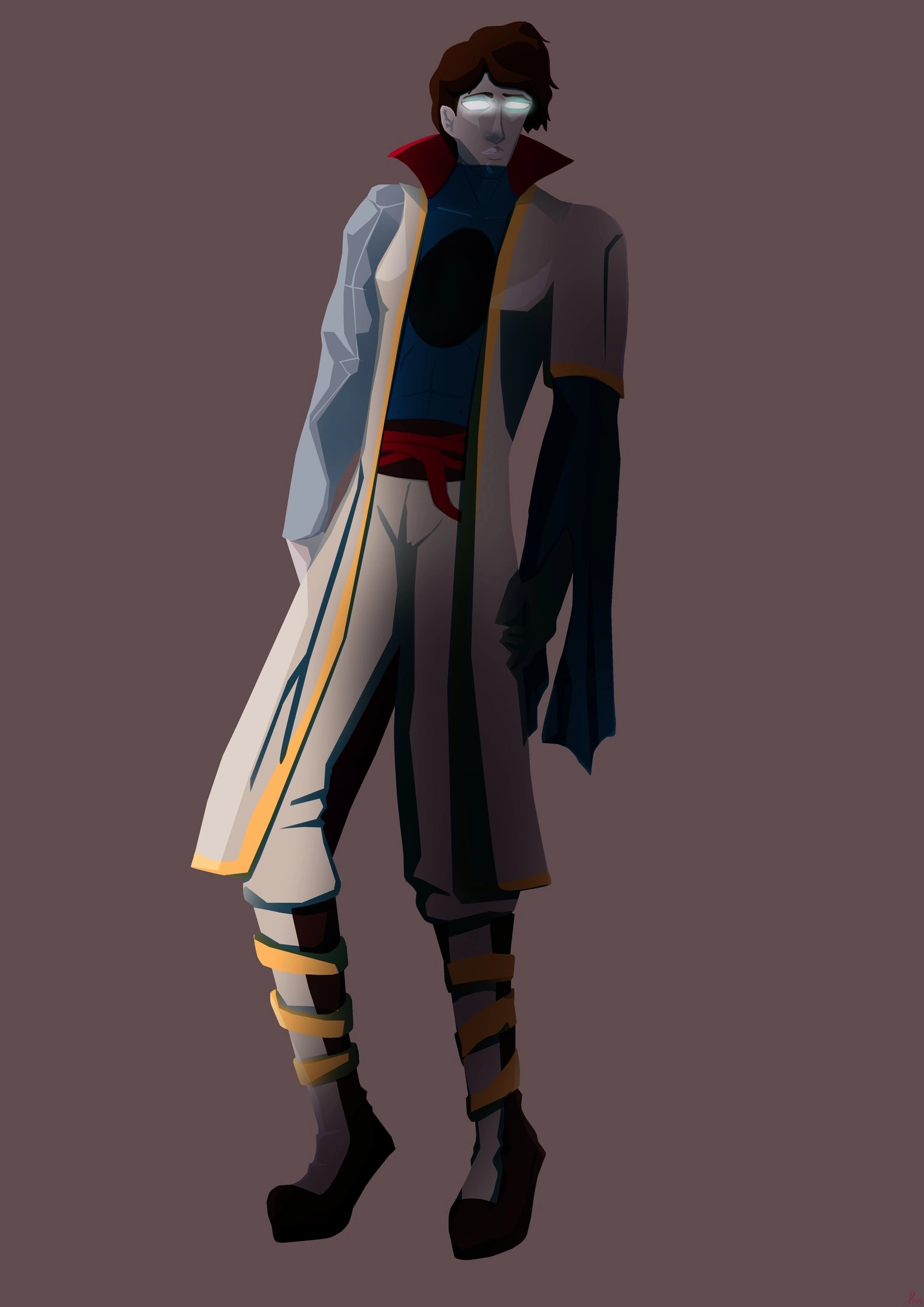Выполнен в безлайн стиле, без фона, с тенями, светом и свячением. Утемнён с левой стороны.