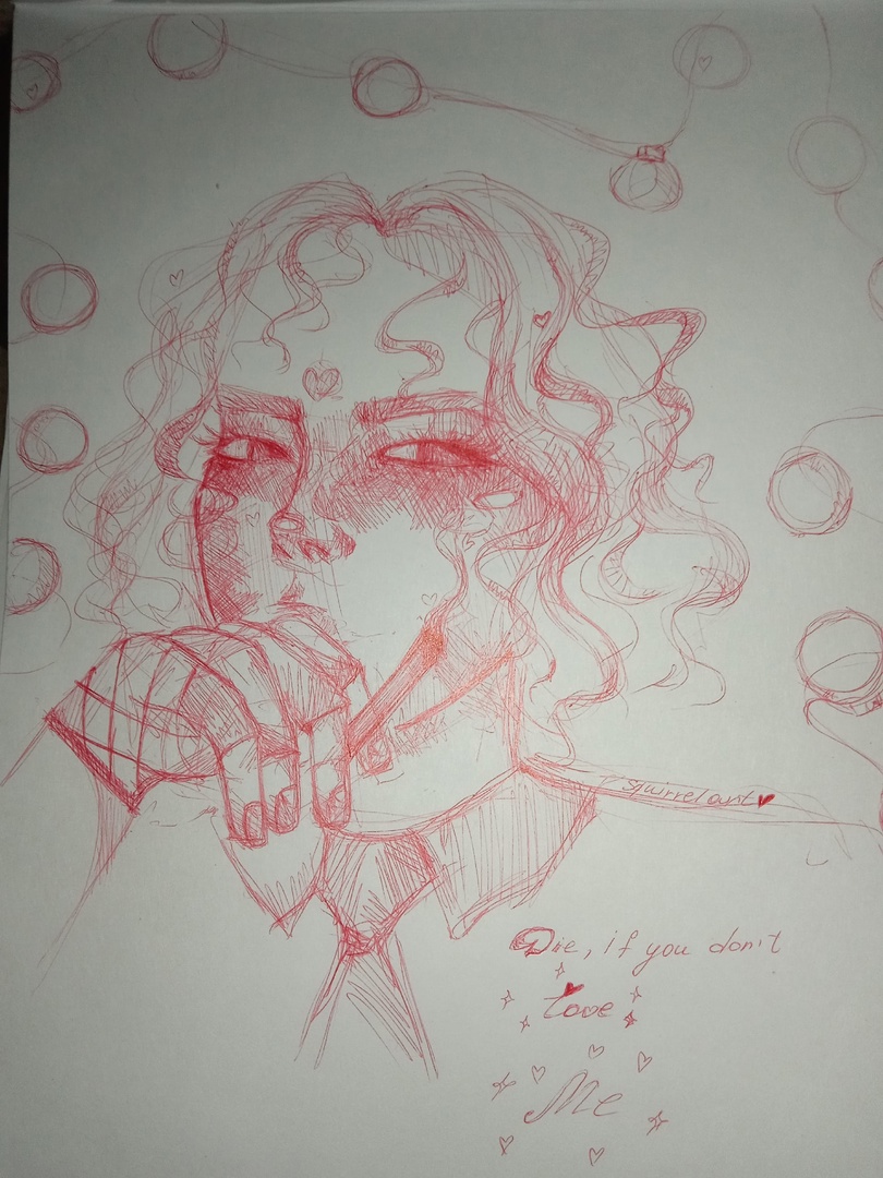 этот рисунок я решила продать из-за необходимых мне денег, он мне очень дорог, надеюсь тому человеку, который захочет его купить он так же будет нужен как и мне, это портрет одной из моих подруг, выполнен красной ручкой
