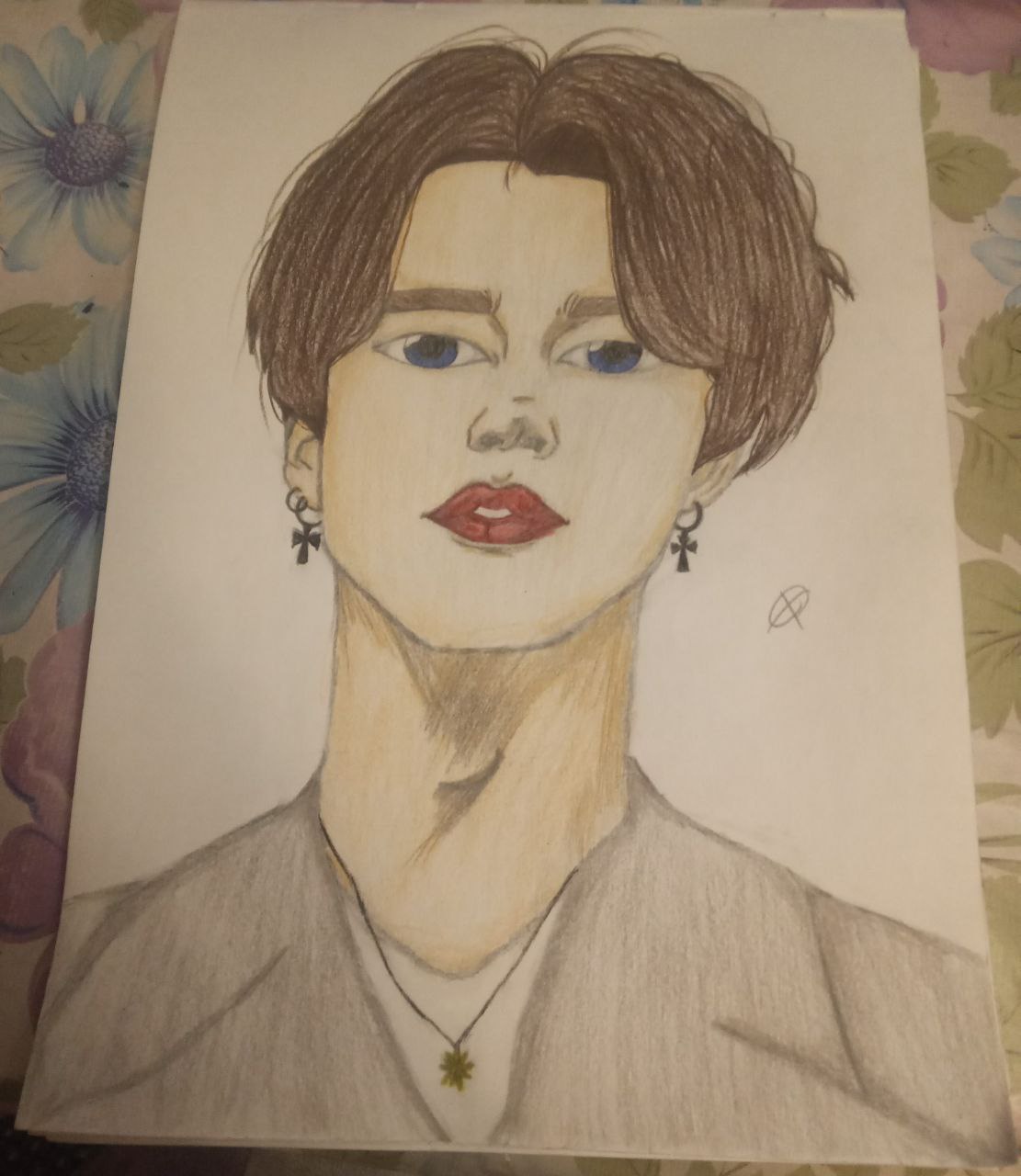 Это первый кореец,которого я рисовала пол дня.В тот день мне было скучно,поэтому я решила порисовать.Поискав вдохновения на просторах интернета,я нашла вдохновение,и приступила к работе над этим артом.В итоге на него ушло много нервов и пол дня.