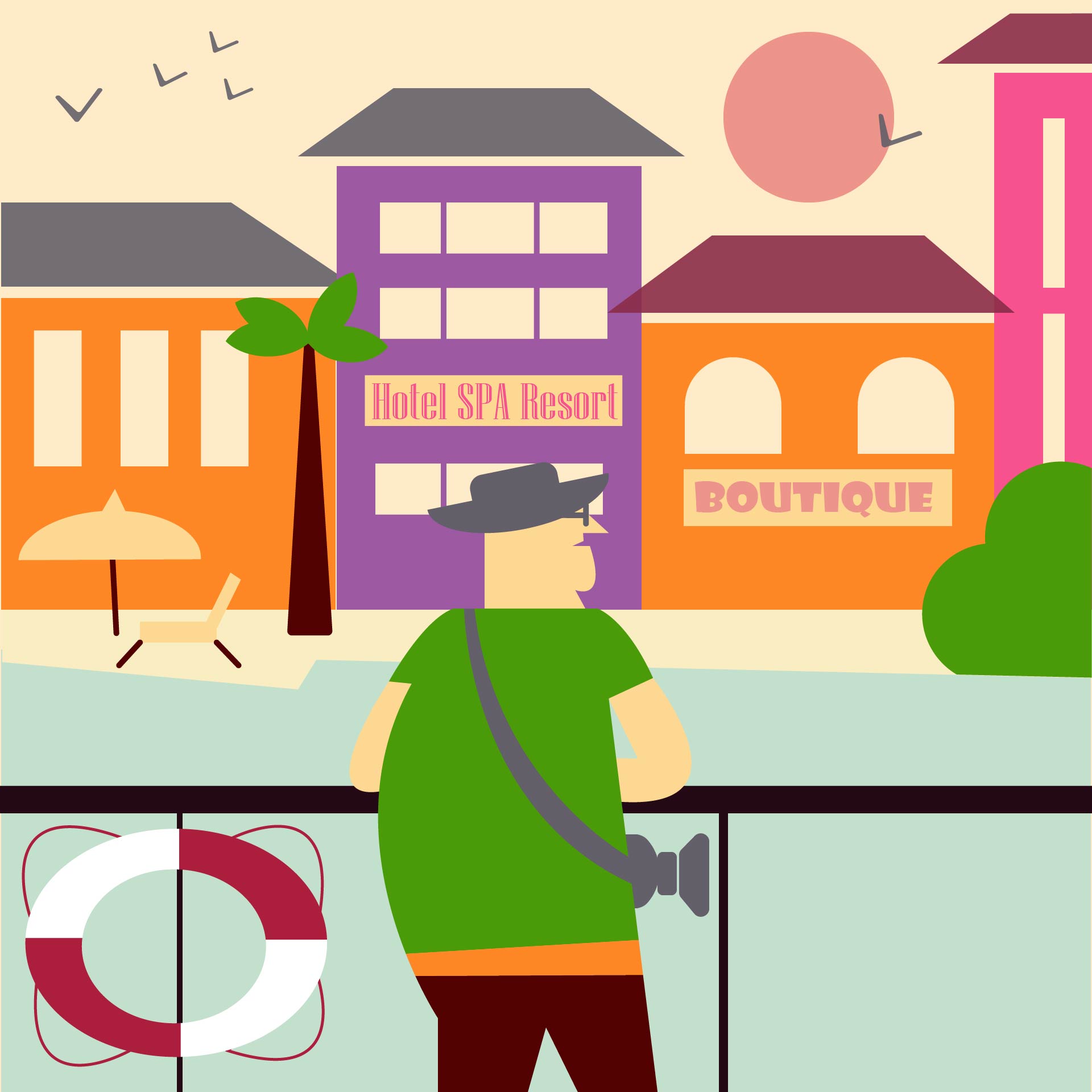 Стиль плаката для туристического отдыха заграницей, круиз.