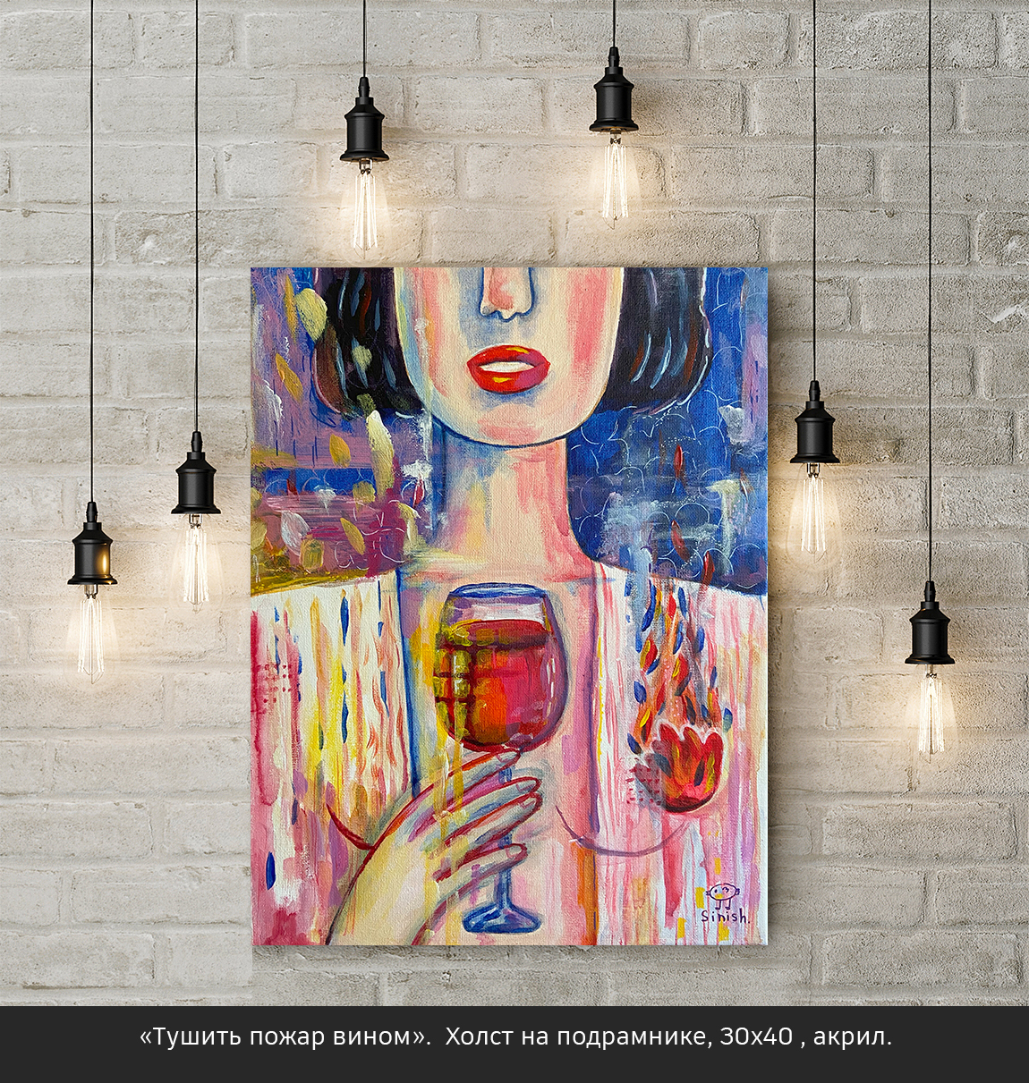 Картина "Тушить пожар вином" выполнена акрилом на холсте 30х40см.