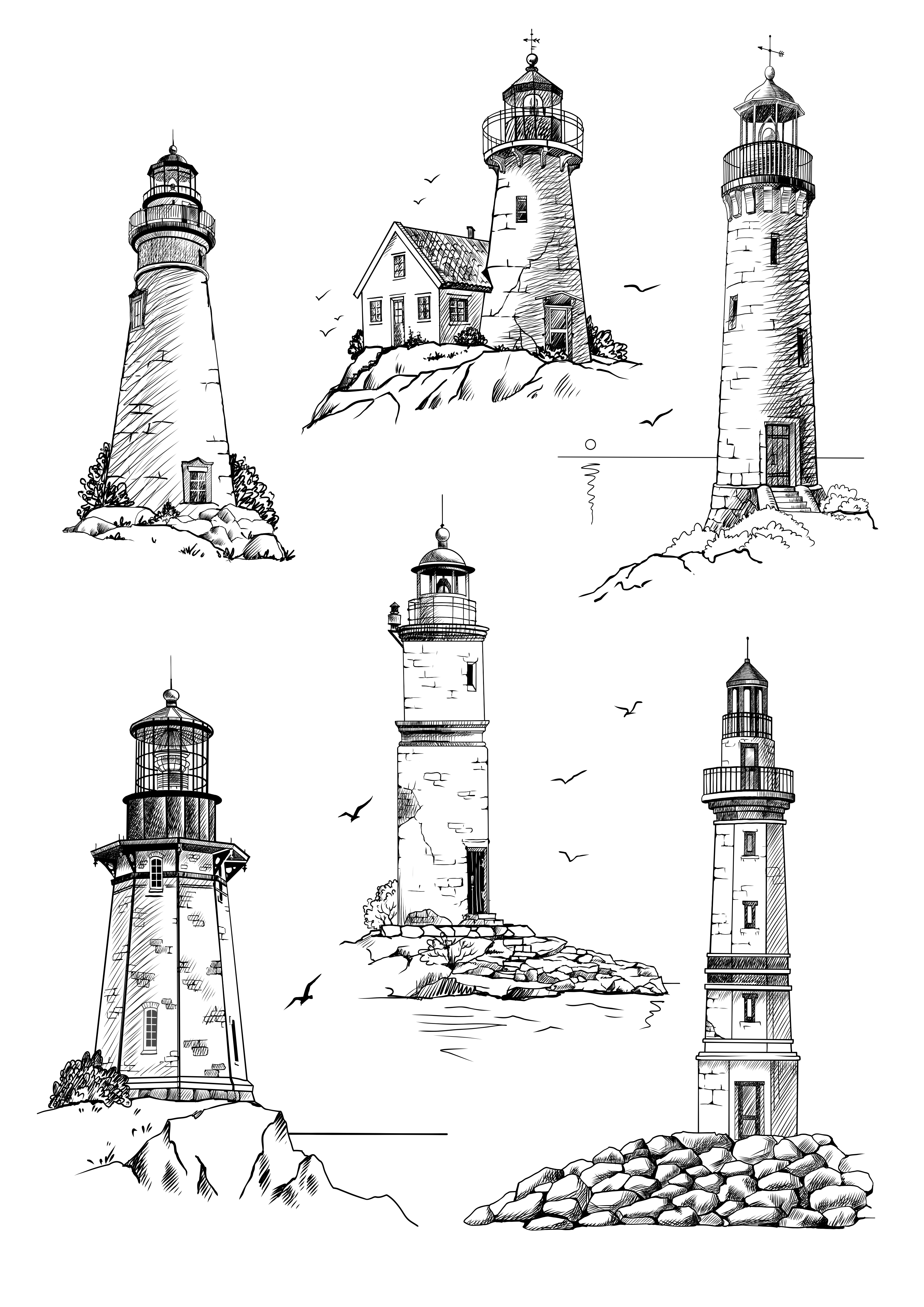 Фантазийные и реальные маяки в векторе. Можно использовать для гравировки или тиснения. Рисую вручную, по индивидуальным заказам, стоимость обсуждается.