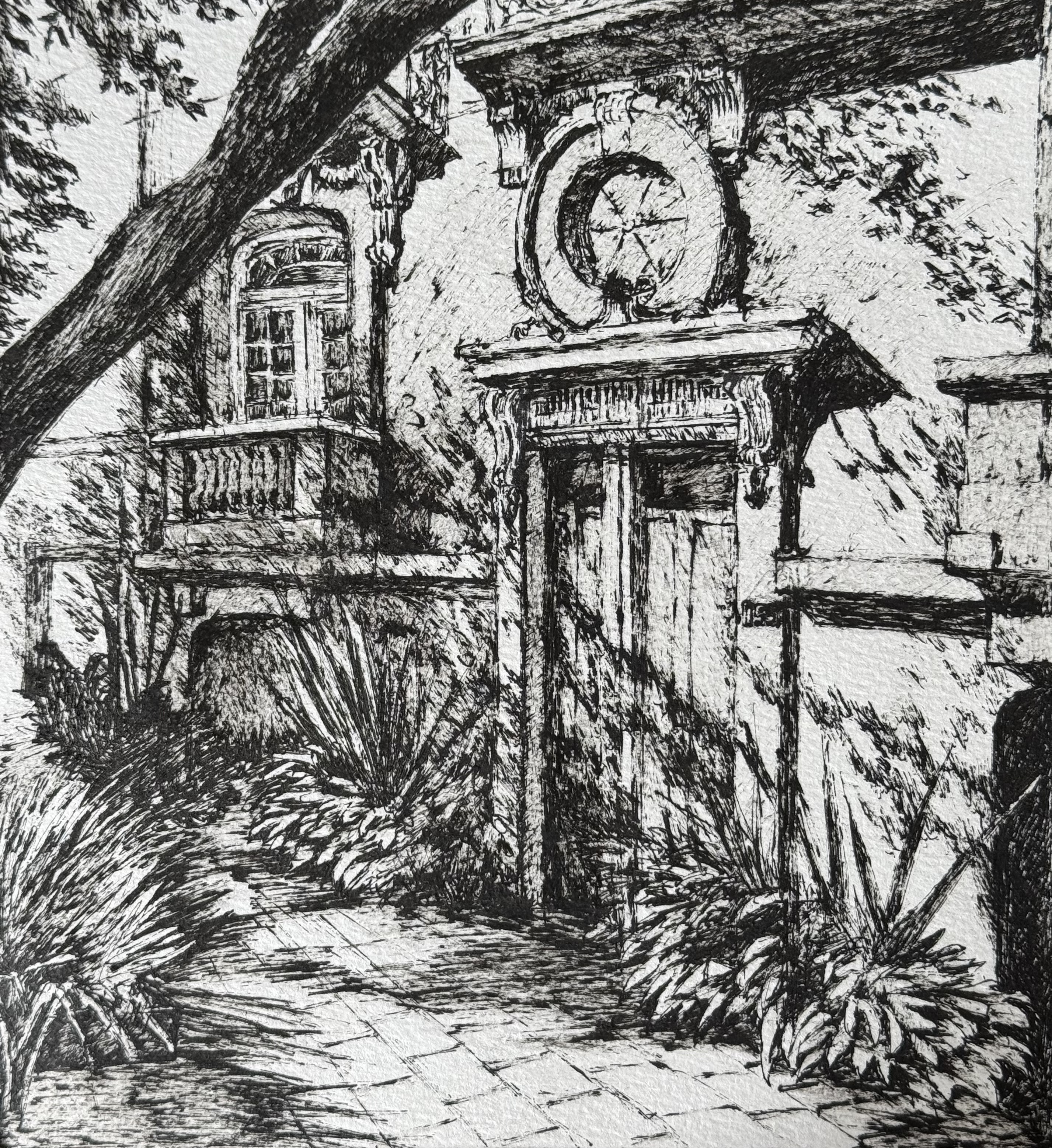Бумага 300 грамм, ручка гелиевая черная. Без использования карандаша и любых других материалов. Это одна из работ серии графики которая сделана специально подобранной мной ручкой с тонким наконечником, дабы использовать таким образом, чтобы она могла не только писать, но и ложилась на бумагу так, как заточенный карандаш. И немного давя и слегка царапая бумагу, используя все те чувства внутри создавала штрих за штрихом.