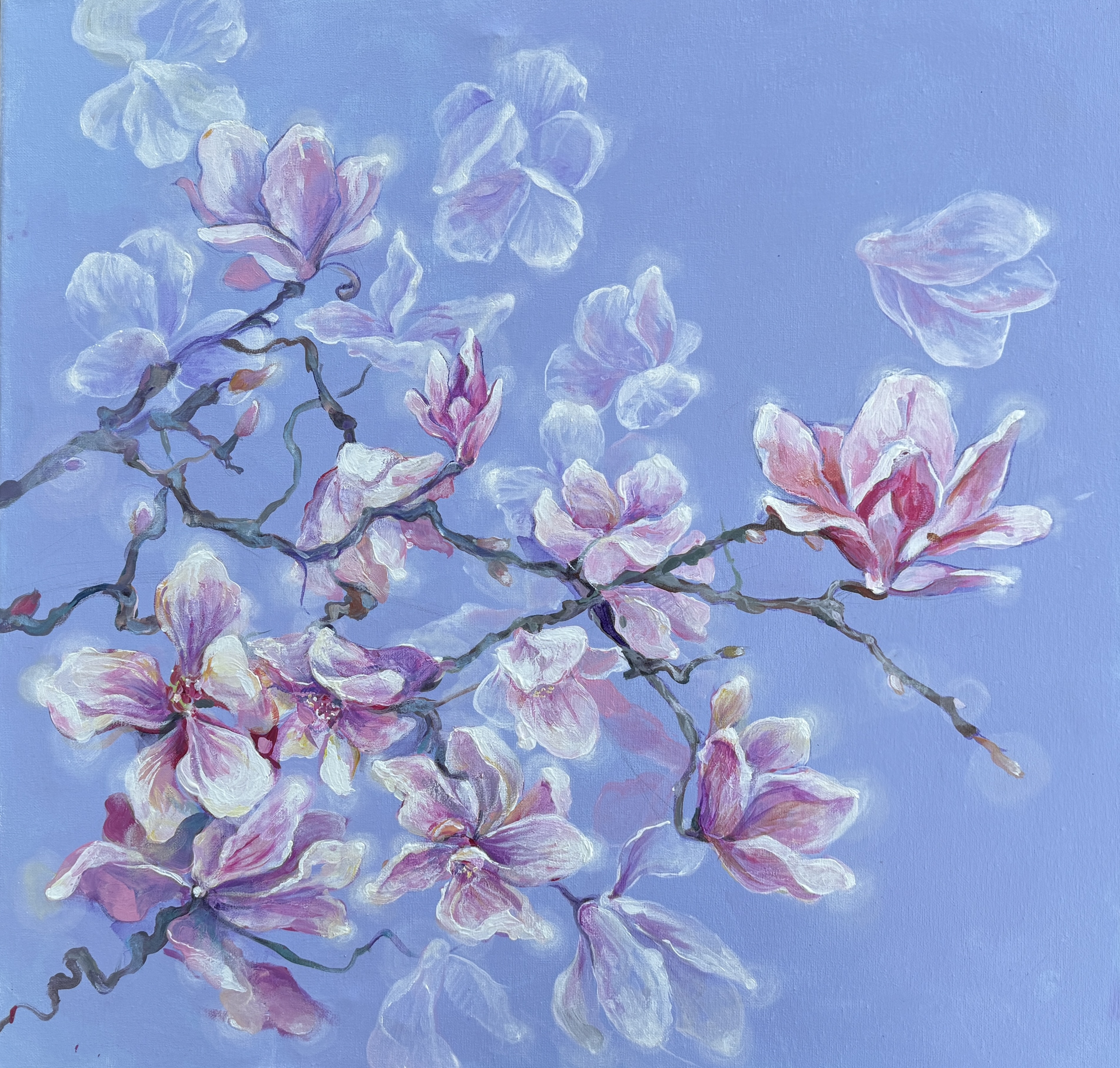 Картина «Магнолии» выполнена акрилом на холсте размером 60×60 см .