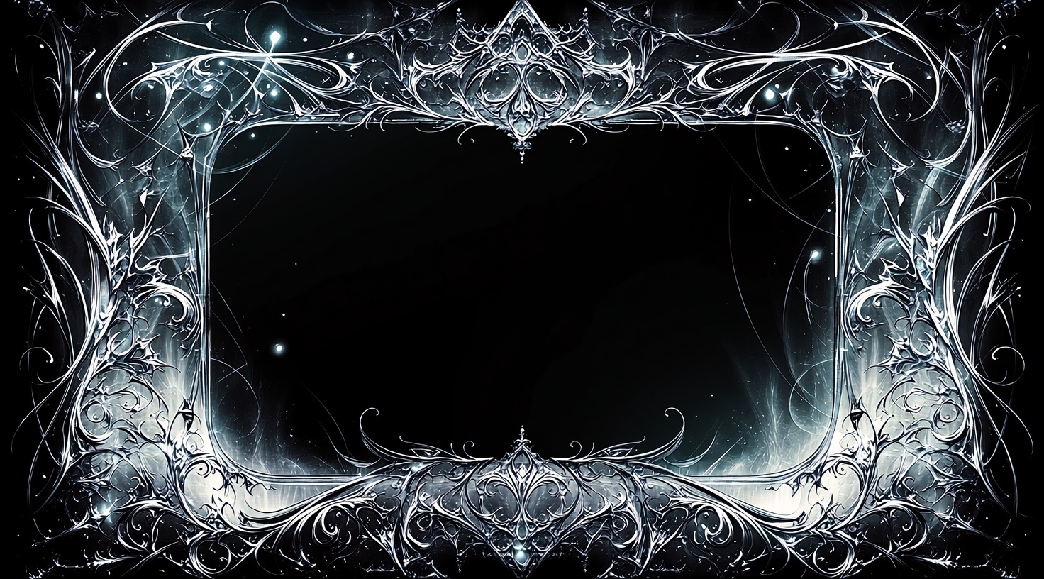 Рамка для текста на чёрном фоне с эльфийским узором в png качество файла 4к. По запросу могу перевести в вектор (работаю с иллюстратором). Нейроарт.