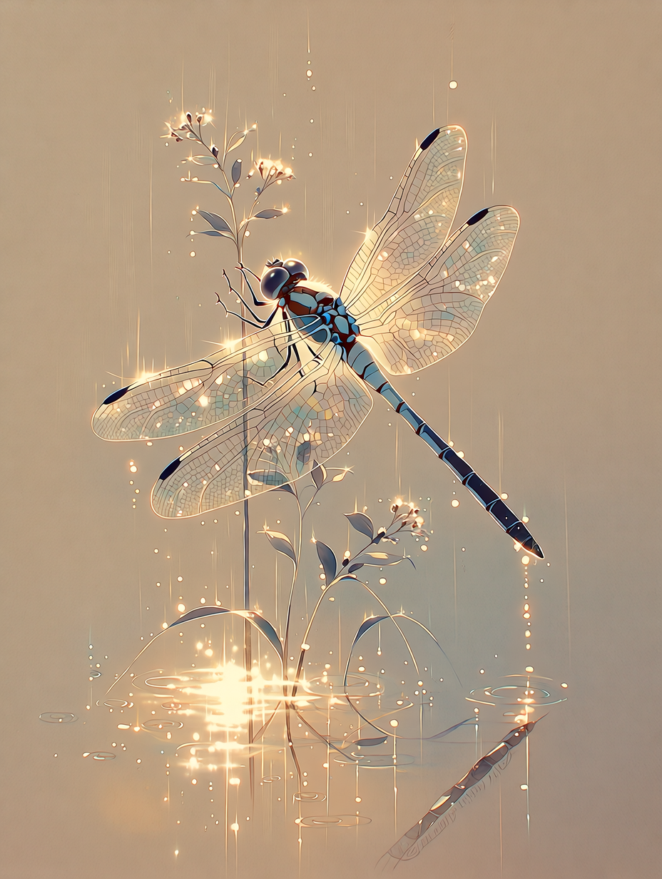 Изображение стрекозы на светлом фоне с каплями дождя. Соотношение сторон 3 к 4. Базовое качество 1 к. при необходимости подниму до 4 к. Нейроарт