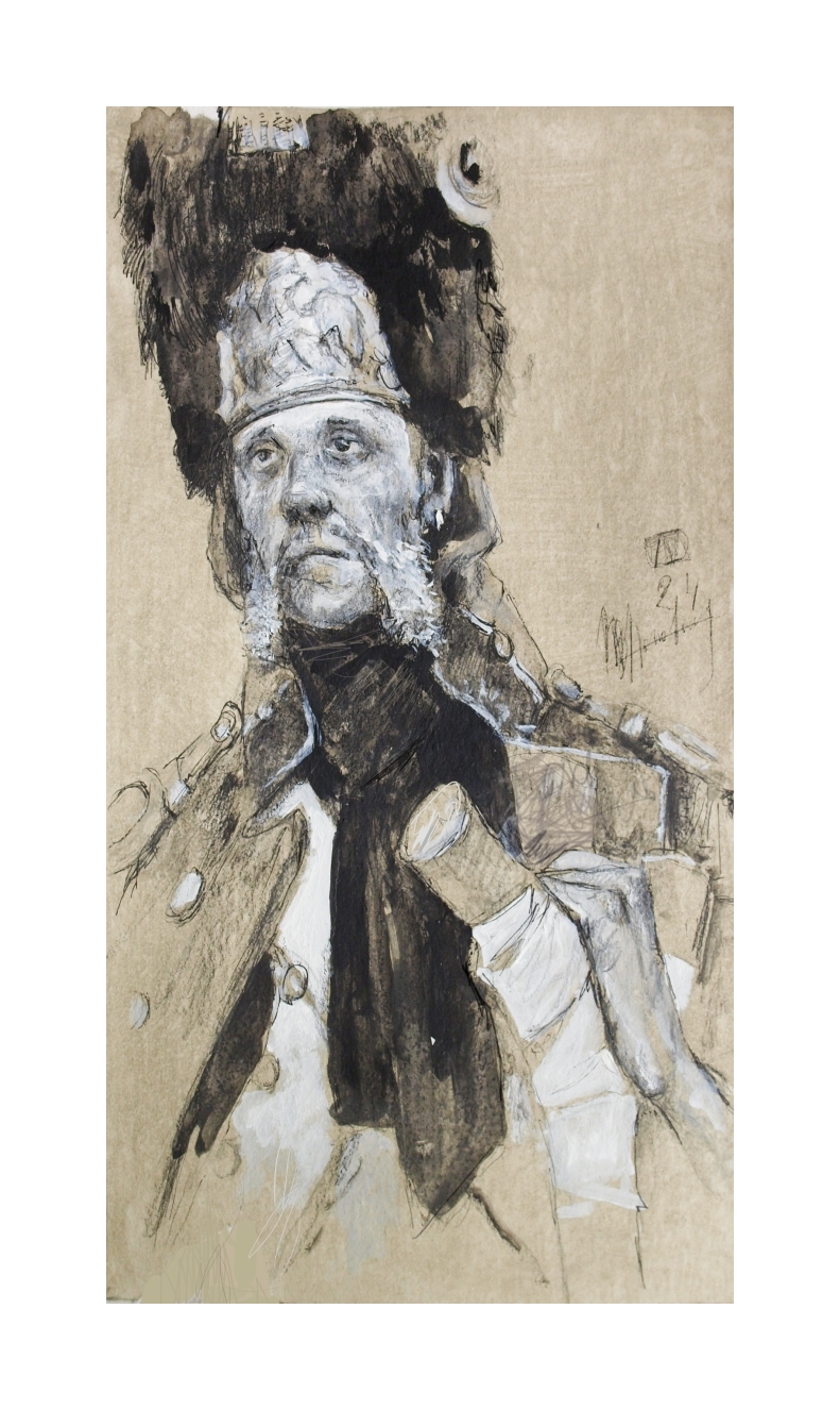 Пеший гренадер Императорской Старой гвардии. Ветеран опирается на импровизированный костыль, надежды покинули его. 1812 г.