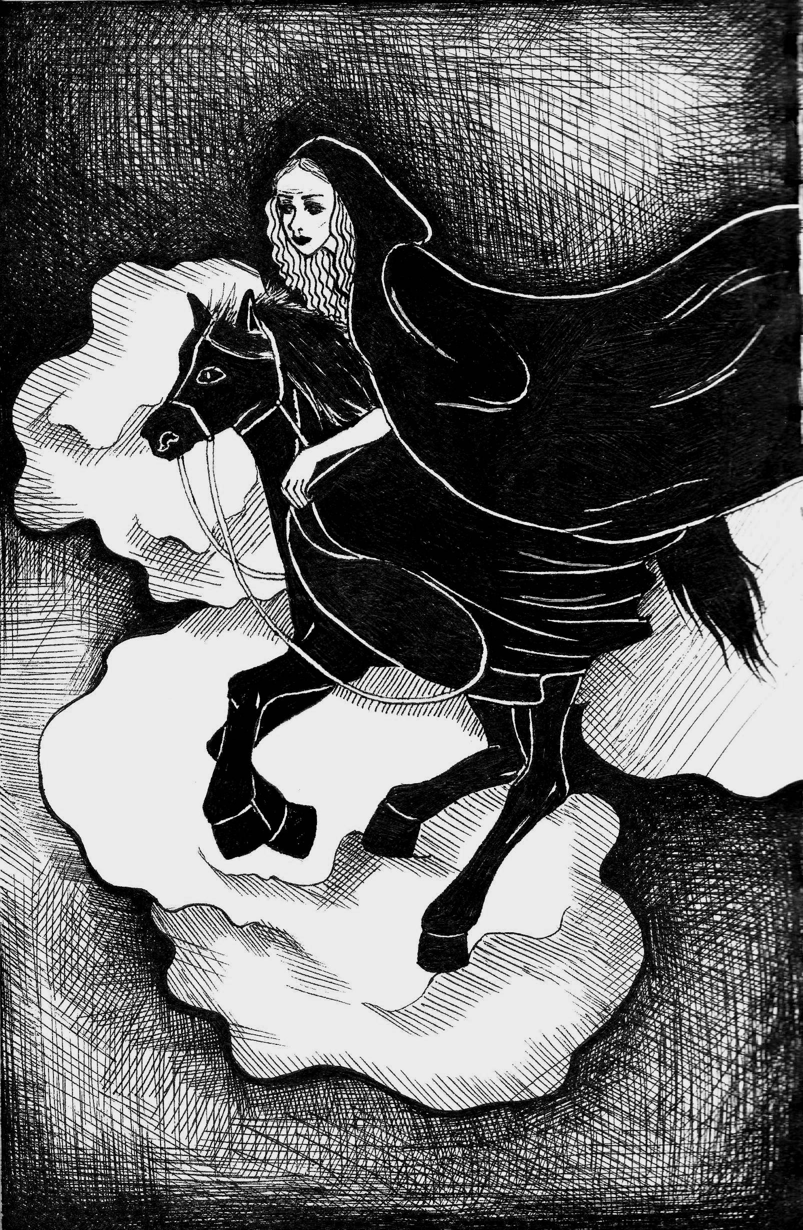 Работа не оформлена. Нарисована черной гелевой, шариковой ручками, маркерами, а так же использовались тушь и перо........................................................................................................................................................................................................................................................