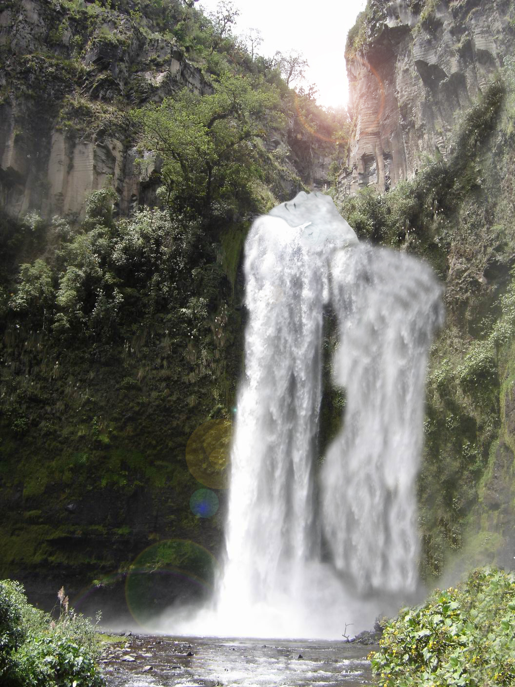 Девушка-водопад. Волосы из воды впадающее в реку. Фентези обложка.