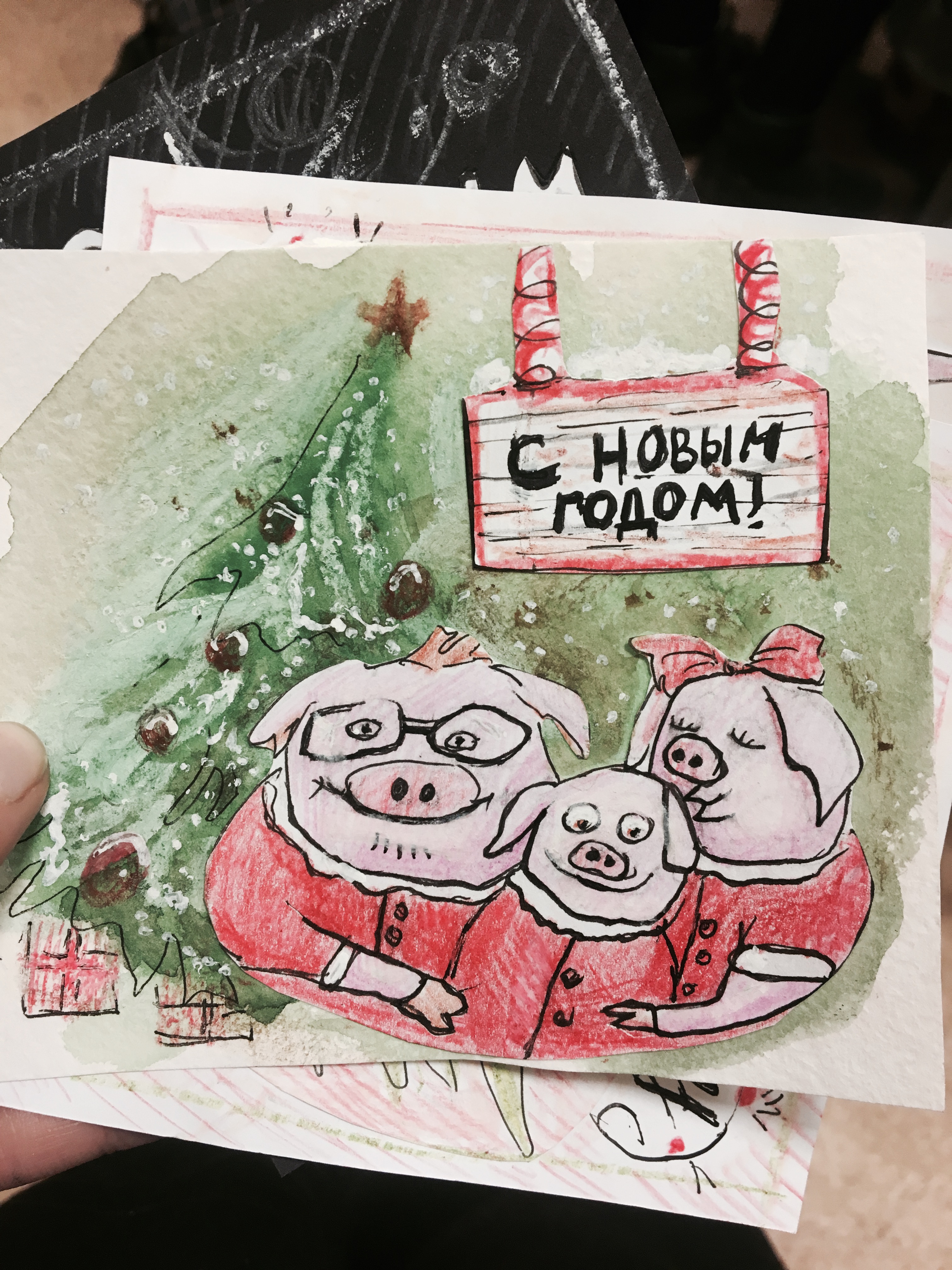 открытка с изображением поросят в честь нового года