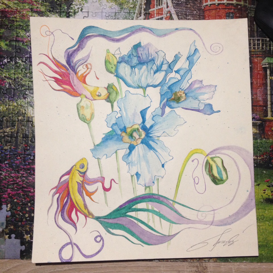 Работу я писала в очень хорошем настроении, вдохновение шло и я выносила это на холст. К этому рисунку я написала музыку. Кому понравилось, покупайте))