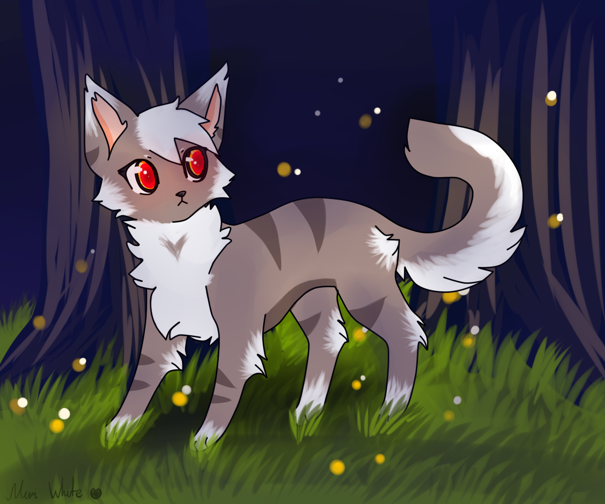 На картинке изображён милый котёнок,остановившийся из-за того,что услышал нечто подозрительное в ночи.