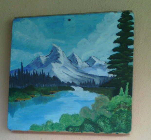 Картина, написанная гуашью. Горы и река. На дальнем фоне лес и водопад. Интересно будет смотреться в любом интерьереДоставка обговаривается. Находится в Челябинской обл.
