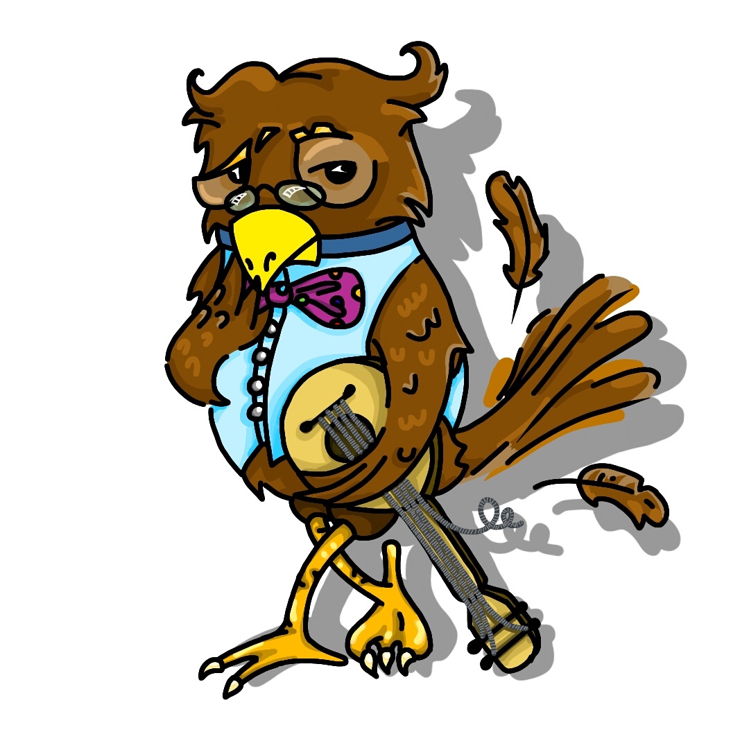 Яркий, мультяшный персонаж - сова играющая на гитаре ;)