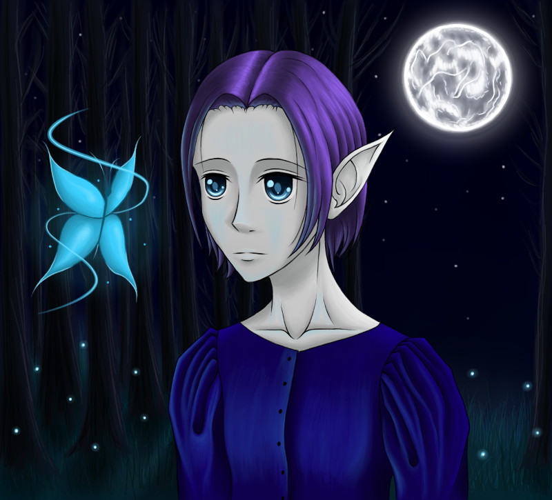 Вампир, гуляющий по лесу ночью, увидел красивую бабочку.