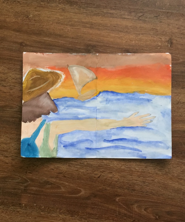 И так. Над это картиной я работала отколу месяца. Долго думала,как изобразить то самое счастье,чудо. Но не то счастье: деньги,богатства. А именно то, детское, легкое чувство. И вот я показала это чудо. Любовь, красота жизни, любовь. Главное- простота.