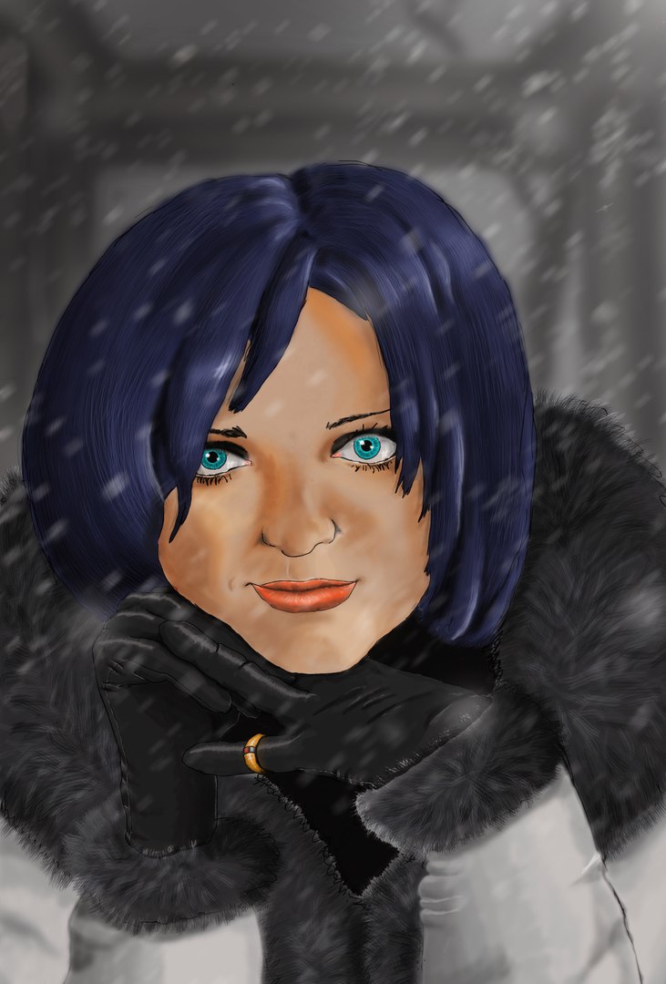 портрет по фотографии. фото совершенно стандортное, которое мы все делаем дома, на прогулке и т.д. полностью создан на Photo shop. вышло достаточно отмосферное изображение